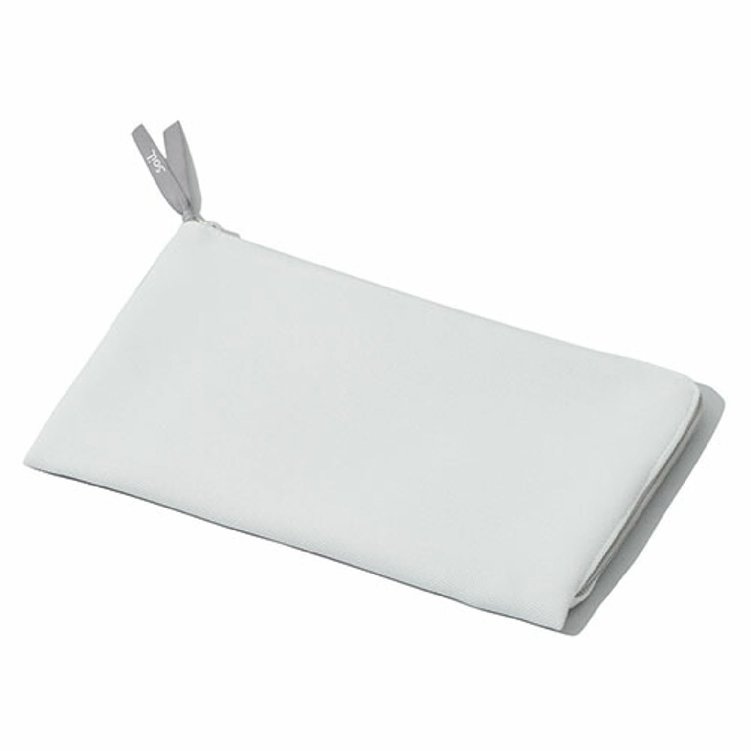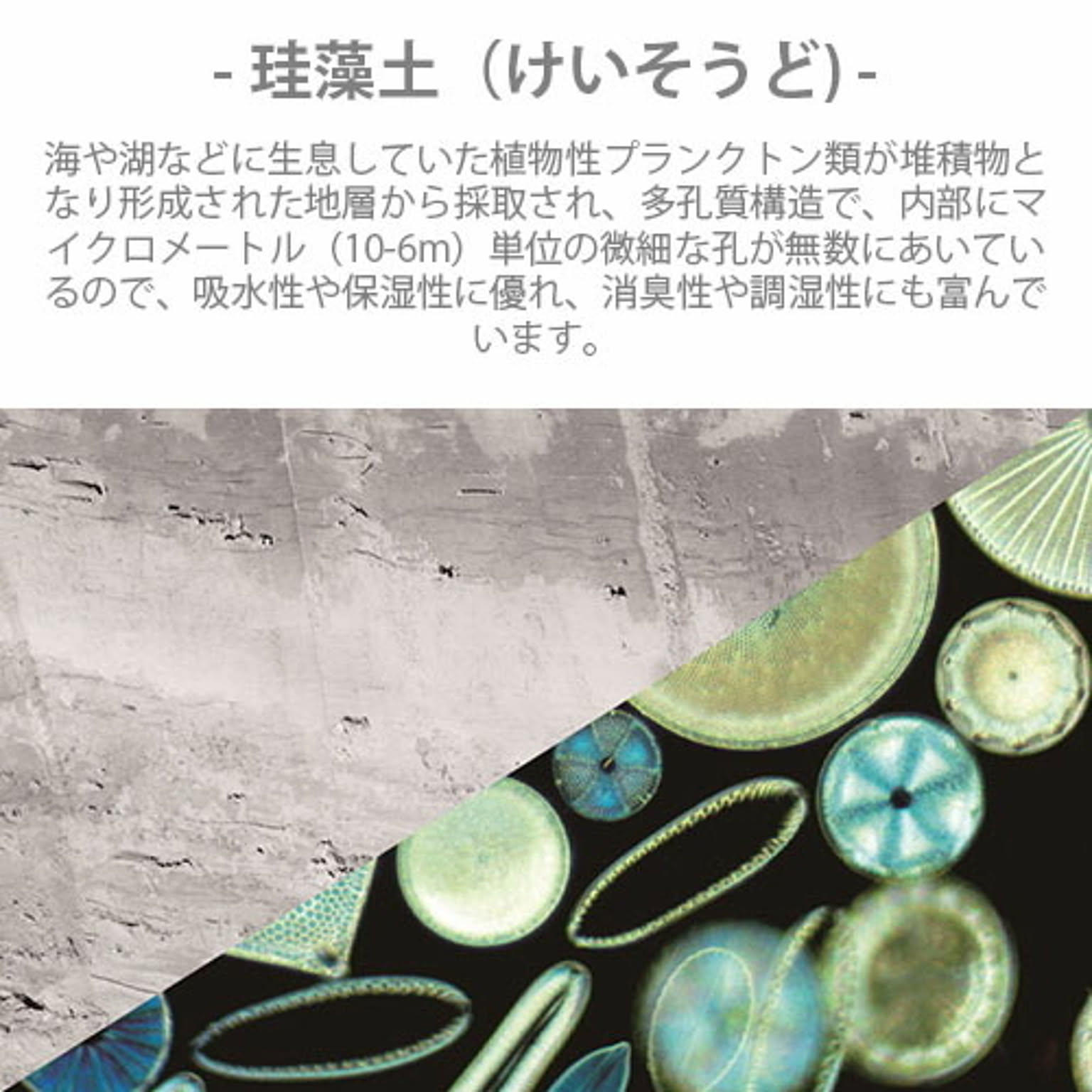 2ポケットに分かれた吸湿脱臭ケース。石川県産珪藻土をポリエステル糸に練り込んだ消臭性、吸水速乾性に優れた特殊生地製。珪藻土の粒とリサイクルアッシュが入った不織布製内袋が湿気とニオイを吸収します。