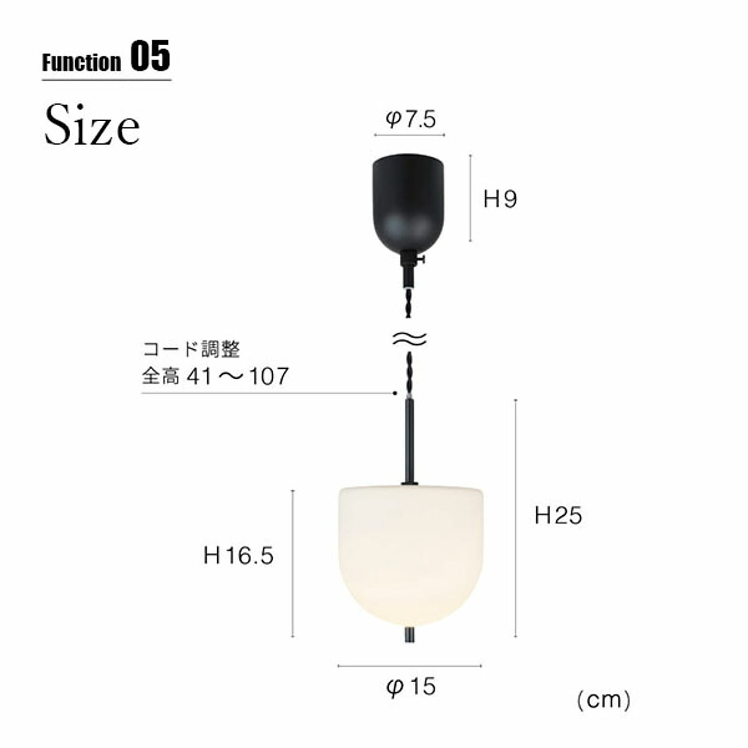 全体:φ15×H25cm / ガラスセード:φ15×H16.5cm / シーリングカバー:φ7.5×H9cm / コード全高:41-107cm