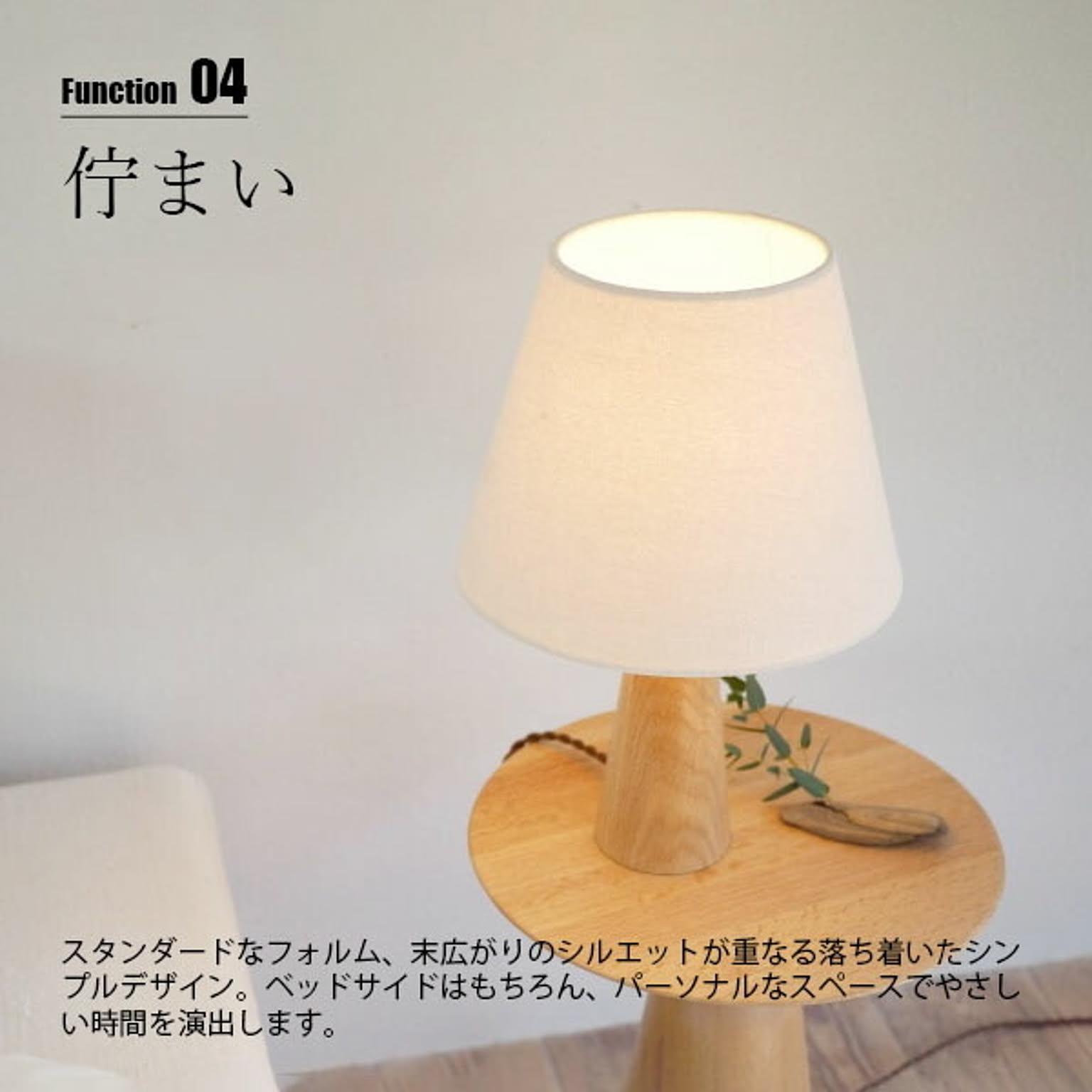 傘をさした人のようなシルエットが特徴的な、ナチュラルで柔らかく光る間接照明。削り出しの技術で仕上げられた一体形成の支柱に、大きめのファブリックセード合わせています。バウハウスのデザイン理念を踏襲し、使いやすさを重視した形状は、シンプルでありながらも親しみやすさを感じさせ、穏やかな印象を与えます。日々をゆったりと過ごすためのアイテムとして、静かな雰囲気を提供します。