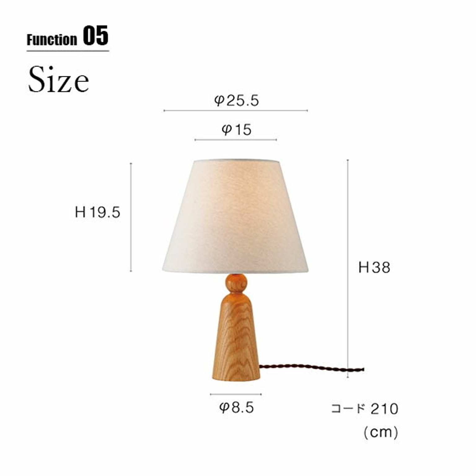 全体:φ25.5×H38cm / セード:φ25.5×H19.5cm / ベース:φ8.5cm / コード:210cm