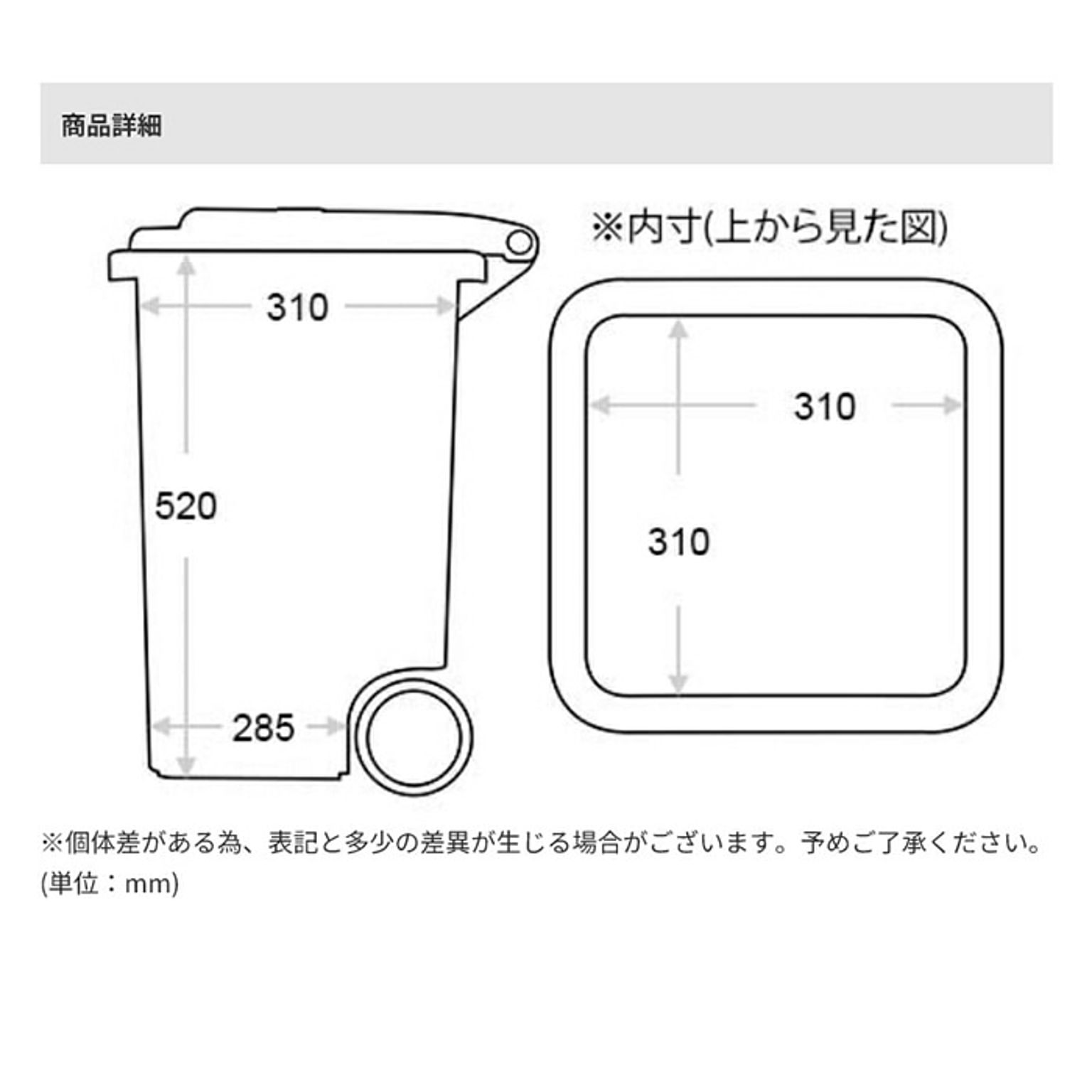内寸(底):W.285mm D.285mm H.520mm