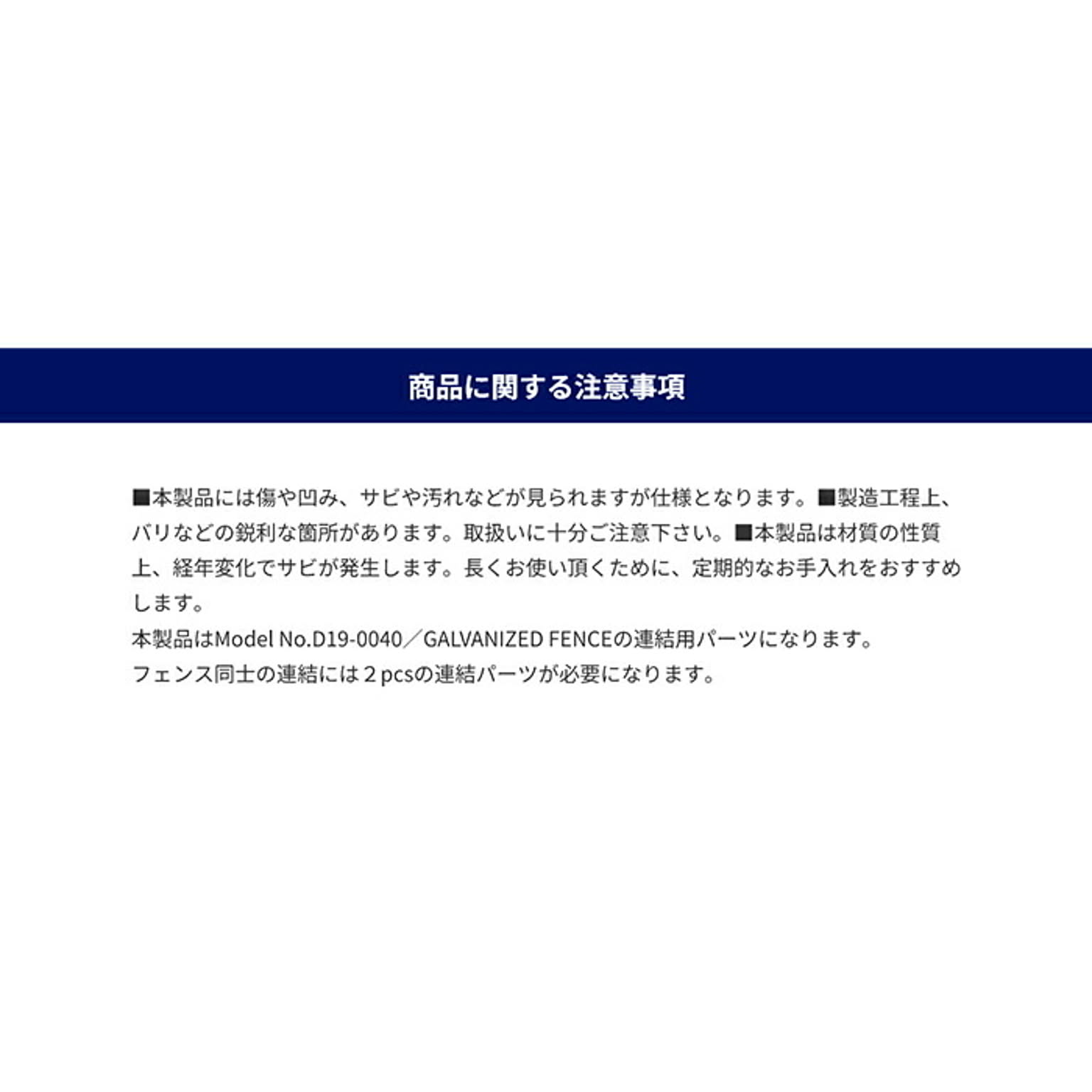 製造工程上、細かな傷や擦れ、研磨痕が生じます。また、亜鉛メッキの仕様上、表面に白錆が生じる場合がありますが、品質や安全性に影響はございません。製品の特性としてご理解ください。
