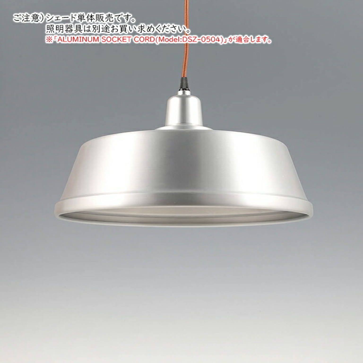 質実剛健をコンセプトとしてデザインされたアルミニウムのランプシェード。冷たさのある表面仕上げとキレのあるフォルムが洗練した雰囲気を演出します。ソケットの取付け口がはめ合いになっており、ソケットを取り付けた際にシェードと一体化したような印象を与えます。スタンダードなシェードから、シャープな方向へ要素を削ぎ落としたデザイン。UFOのような浮遊感が、空間に切れ味をプラスします。