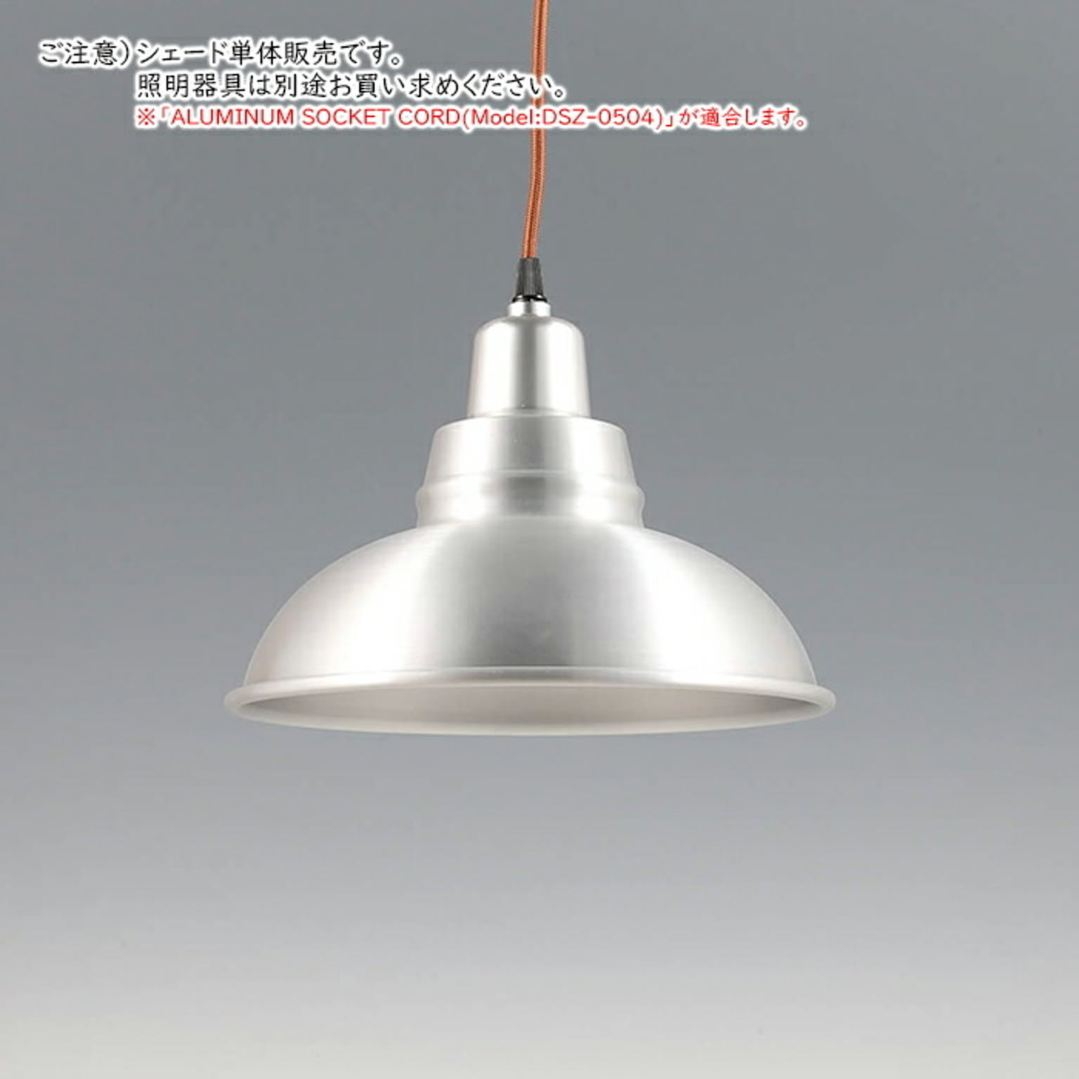 質実剛健をコンセプトとしてデザインされたアルミニウムのランプシェード。冷たさのある表面仕上げとキレのあるフォルムが洗練した雰囲気を演出します。ソケットの取付け口がはめ合いになっており、ソケットを取り付けた際にシェードと一体化したような印象を与えます。スタンダードなシェードから、シャープな方向へ要素を削ぎ落としたデザイン。UFOのような浮遊感が、空間に切れ味をプラスします。