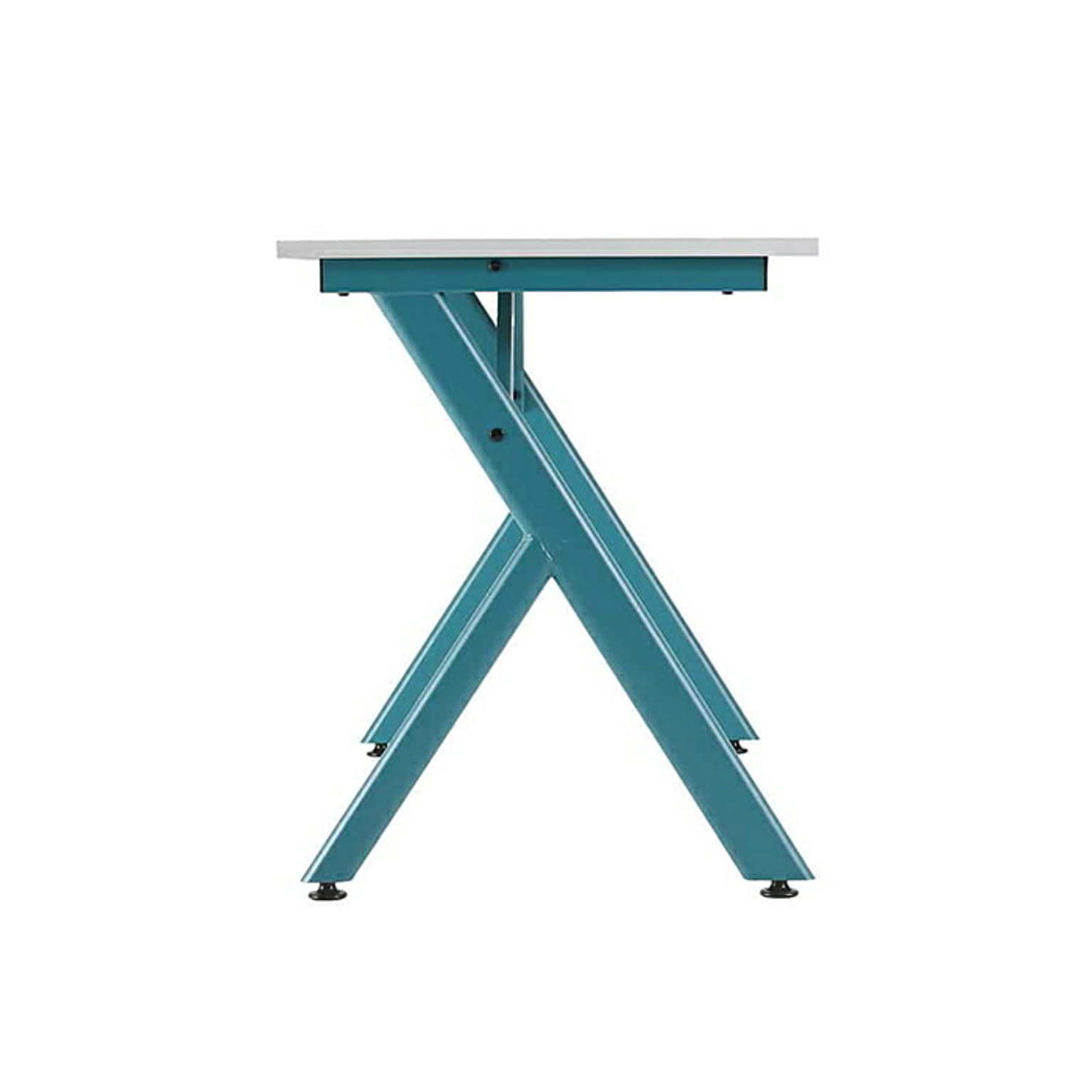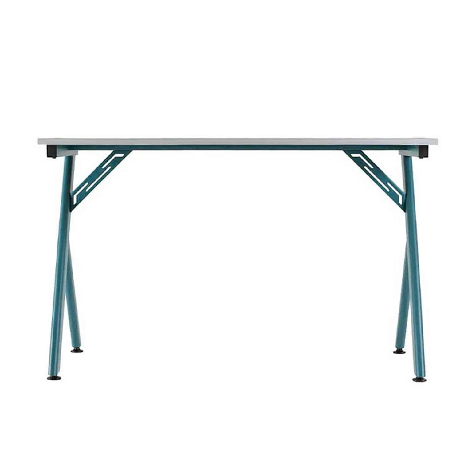 特徴的な形状とカラーリングが目を引く作業用デスク。その独特な形状は、使用時に絶妙な快適さをもたらします。天板に施されたアルミのエッジは、少し高さがあるので、デスク上のペンや工具が落下するのを防ぐ役目も。スチールの重厚感・安定感を残しつつも軽量なので、移動も楽々。他のスチールアイテムとの調和性も抜群な凡用性の高いデスクです。