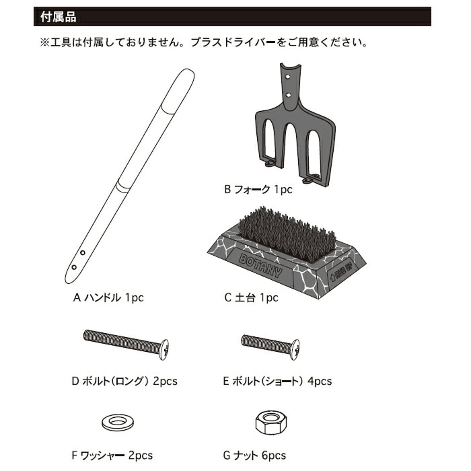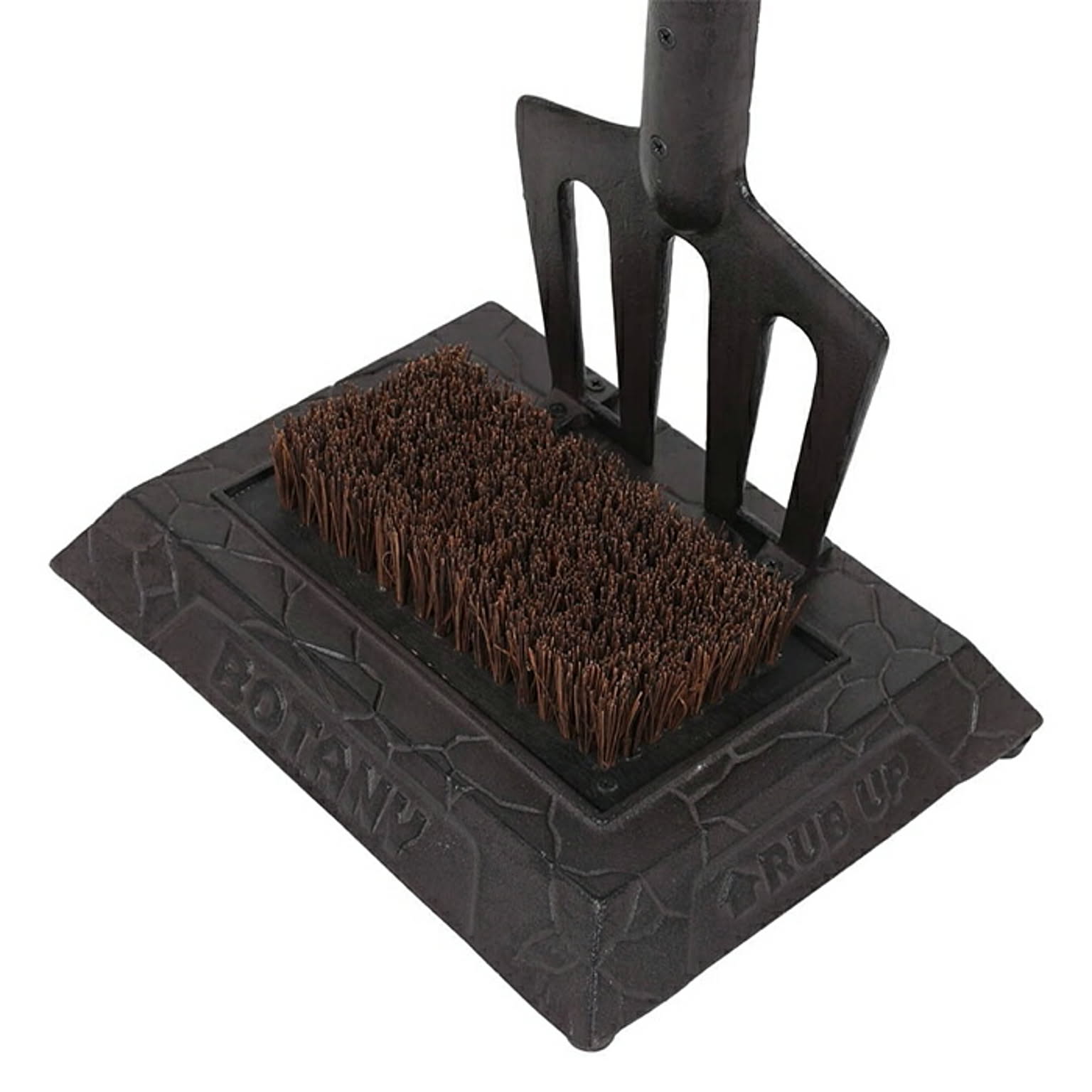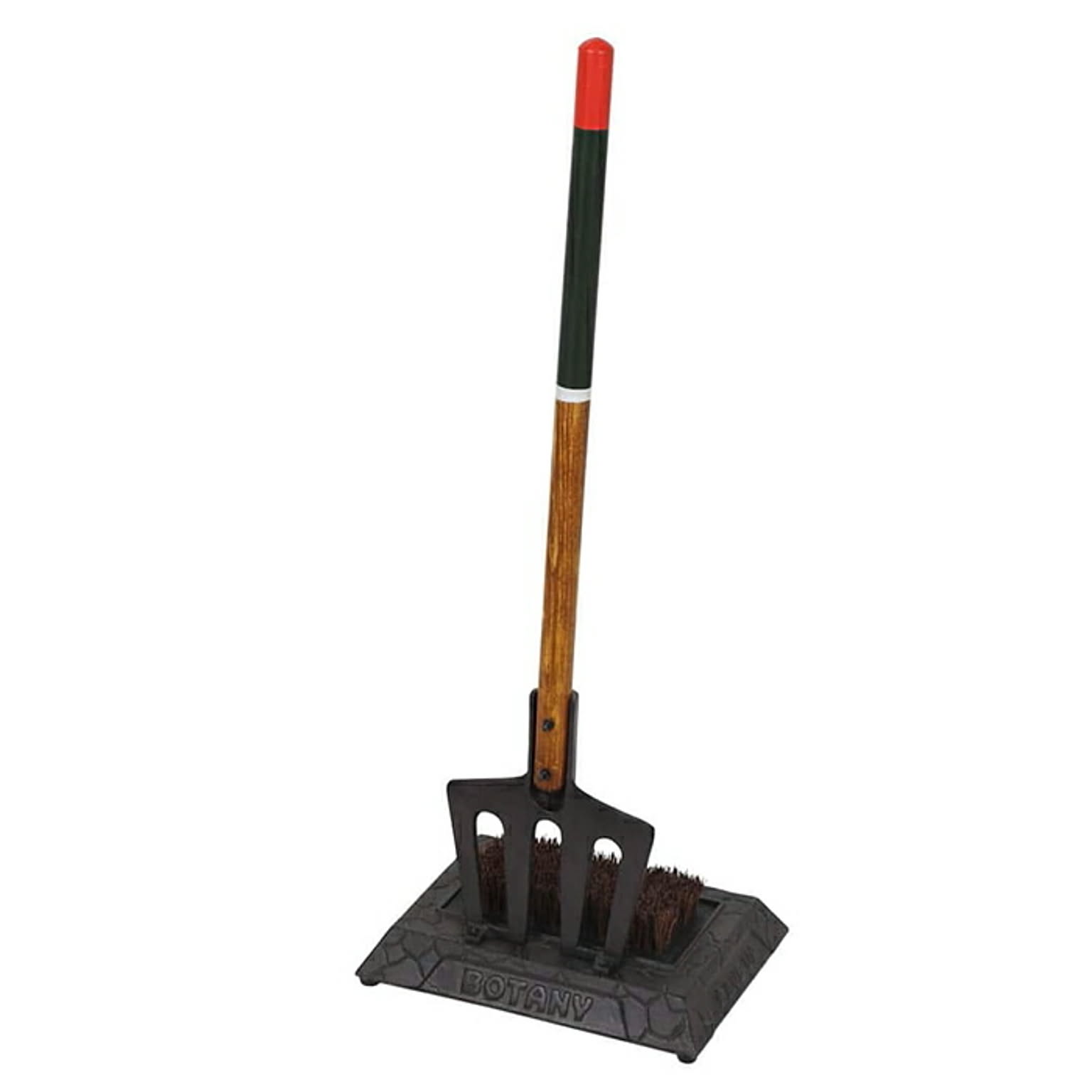 思わず引き抜きたくなる、ガーデンツールをモチーフにしたブーツブラシ。アイアンの重厚感とその造形美、細かなディテールが、所有感を満たします。ハンドルを握り、ブラシ部分で靴底の泥を擦り落とす光景は、どこかユーモラス。大人から子どもまで、遊び感覚で泥を落とせます。