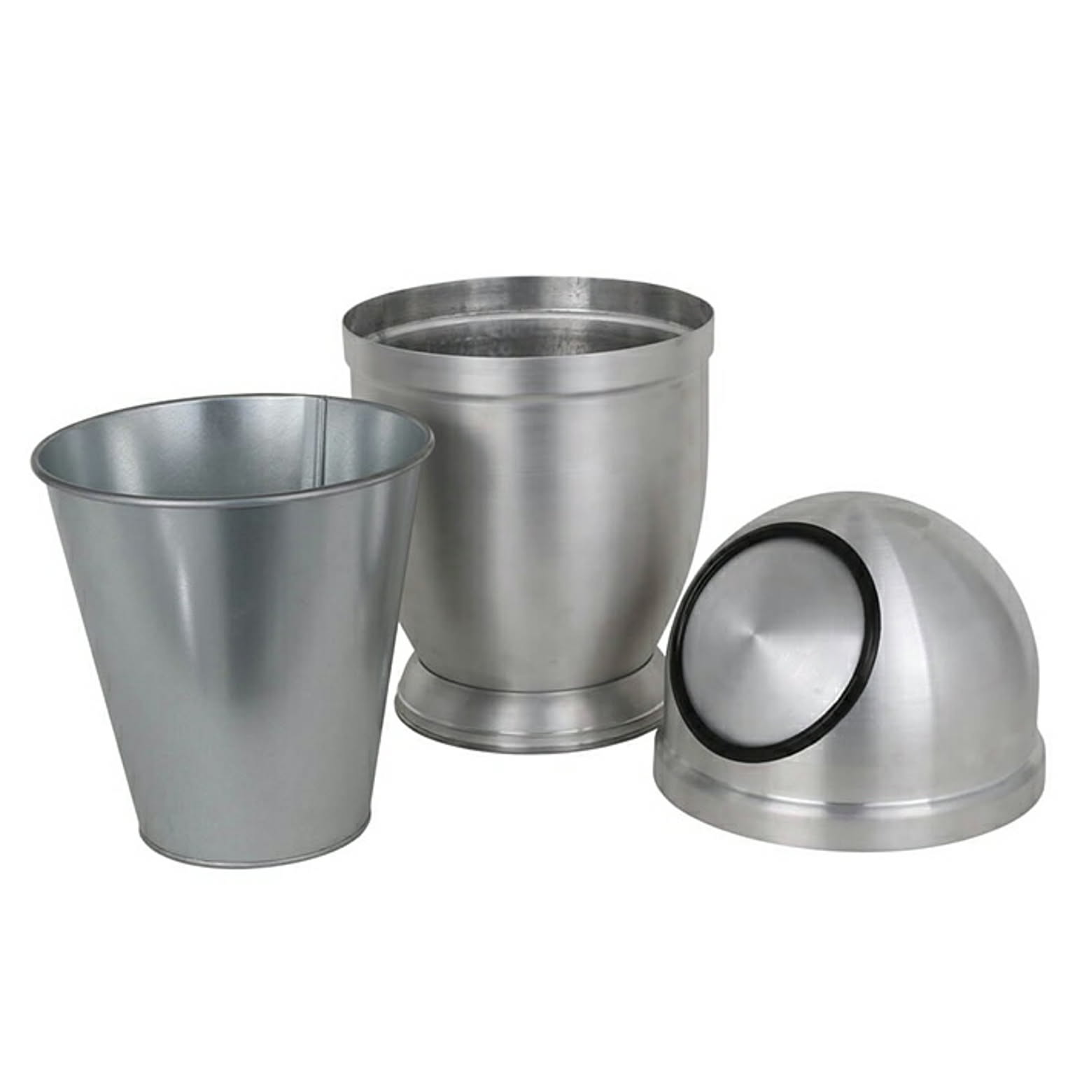型から研磨まで丹念に作り上げられたアルミ製のゴミ箱。スペーシーなメタリックボディ、特徴的なドーム型のフォルムが印象的。プッシュ式の蓋が、まるで宇宙船への乗り込み口かと思えるほど、ロマンに溢れたプロダクトです。その仕上がりを前に、モノとしての価値を見出さずにはいられません。