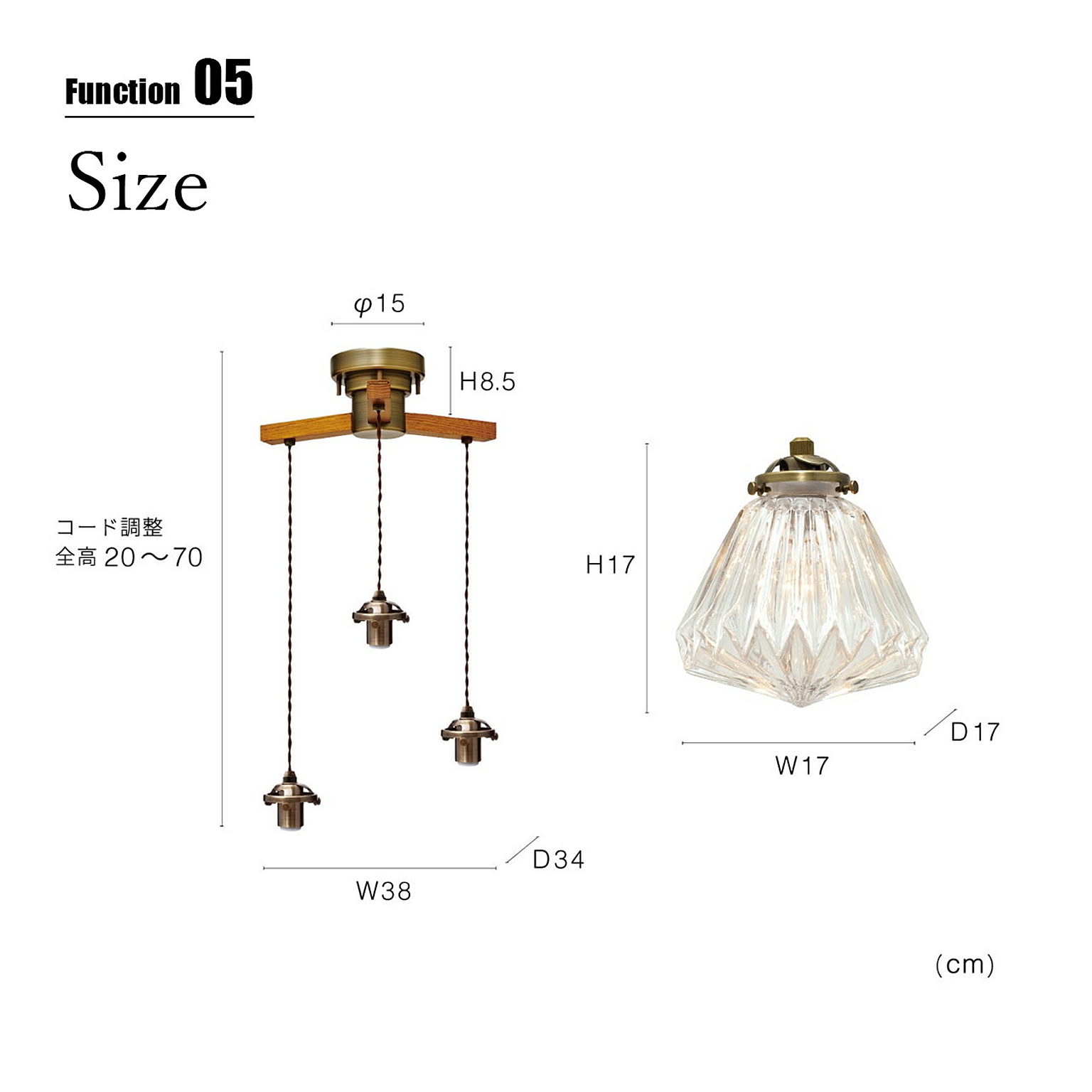 本体:W38×D34cm / コード全高:全高20-70cm / セード:W17×H17×D17cm