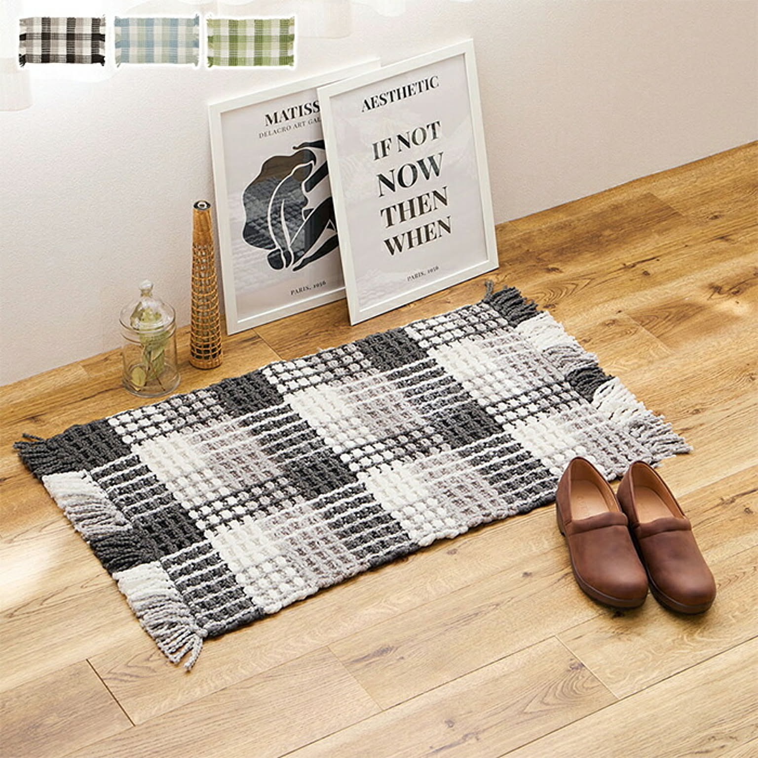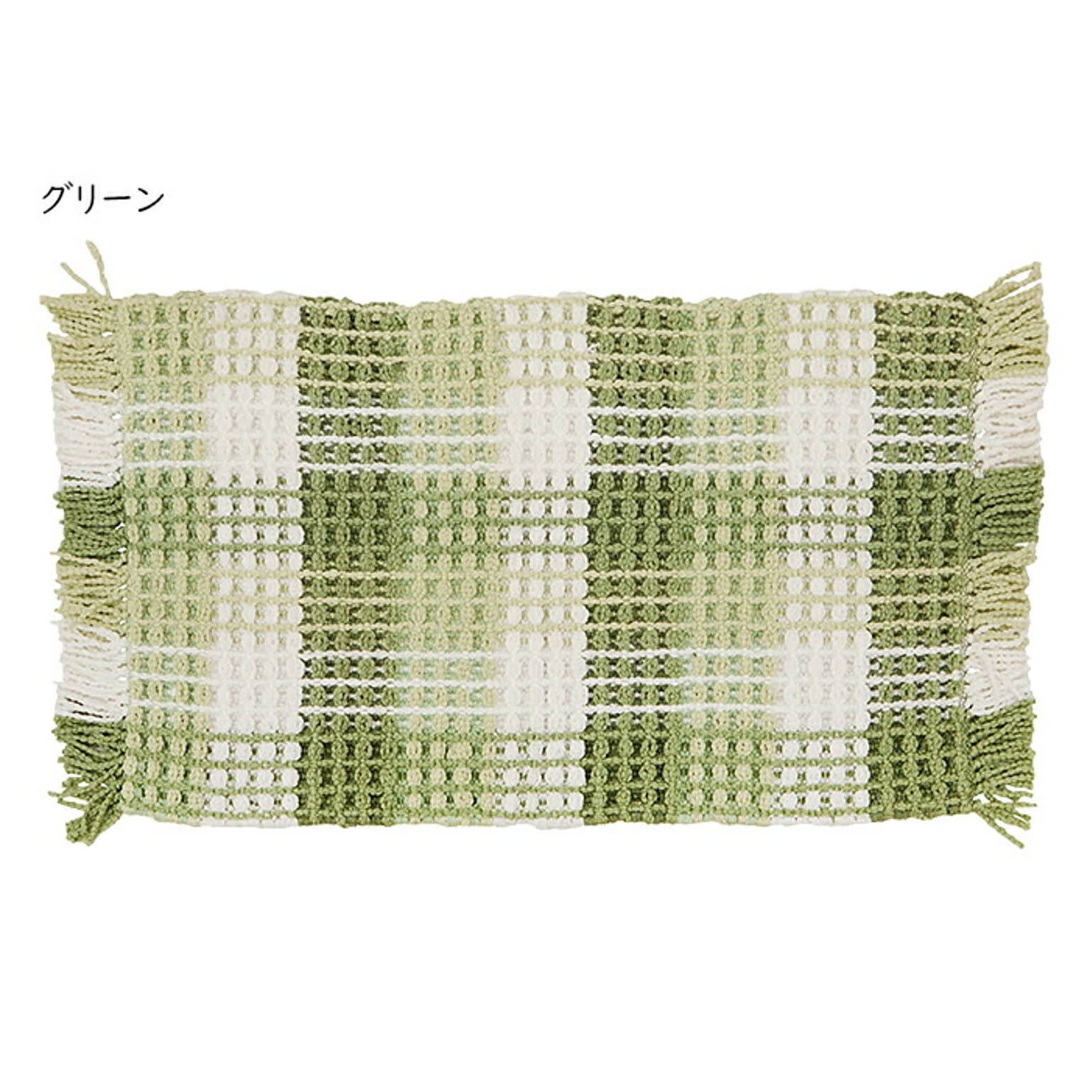 やわらかい糸を立体的に織り込んだワッフル風のぽこぽこ触感。コットンのサラッとしたタッチと、ポリエステルの乾きやすさ、ふたつの素材の特徴を活かした使いやすいラグマットです。汚れたら洗濯機で洗えるのも嬉しいポイント。さわやかなギンガムチェックのデザインで、インテリアのアクセントにぴったりなアイテムです。