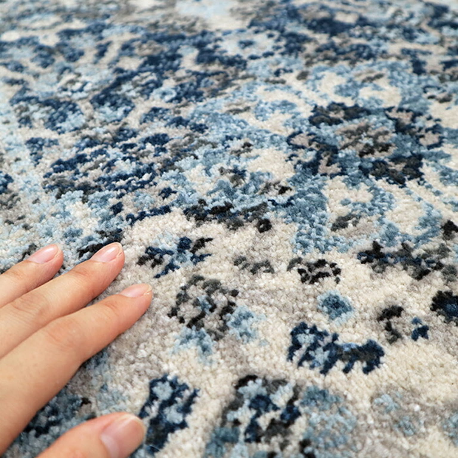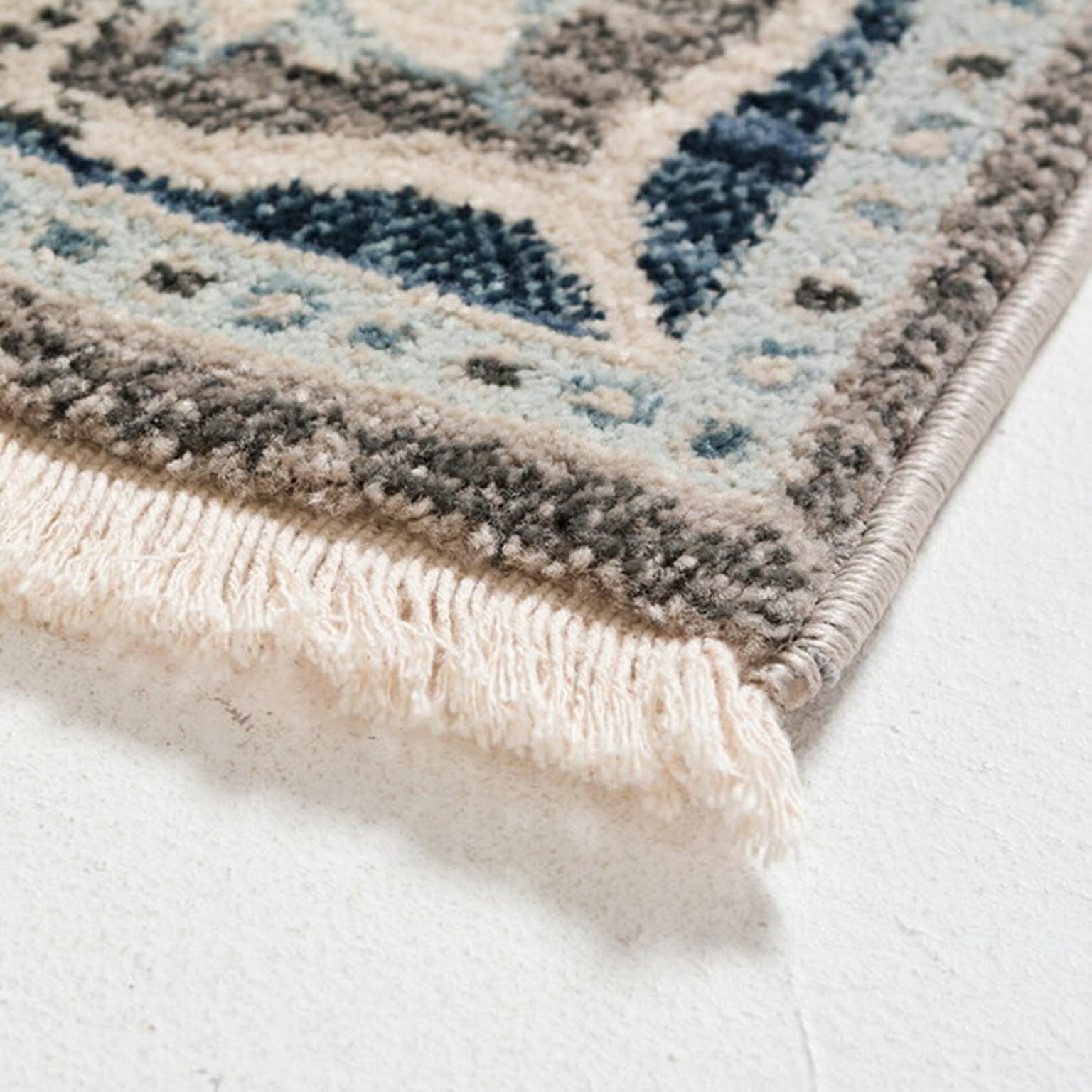 ラグの名産地トルコ製のウィルトンラグ。民族調手織り絨毯の様なエスニックなデザインをウィルトン織機で織り上げました。毛足は1cm程ありますが密度が高く、掃除機もかけやすいようデザインされています。縦糸の特殊加工により生地がやわらかく、折りたたんで収納出来ます。