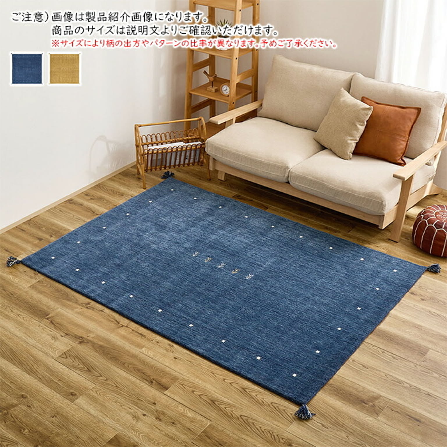 ギャッベ ラグ LORRI BUFF インド製 正方形 200x200cm 萩原
