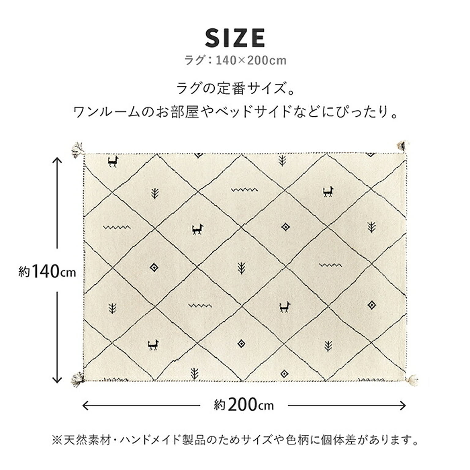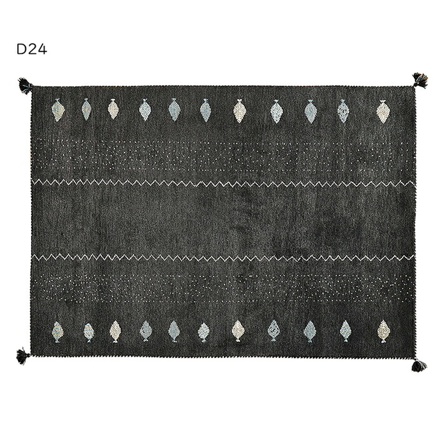 遊牧民の生活の知恵から生まれた手織り絨毯「ギャッベ」インドの職人によって一枚一枚丁寧に手作業で作られるため、同じ柄でも少しずつ表情が異なり、一点ものとしての魅力をお楽しみいただけます。また、ギャッベではめずらしい横向きのデザイン。ウ−ル素材は暖かく冬に適しているイメ−ジがありますが、温度差の激しい環境で育った羊から取れる羊毛は、保温性と湿度を調節する機能に優れています。
