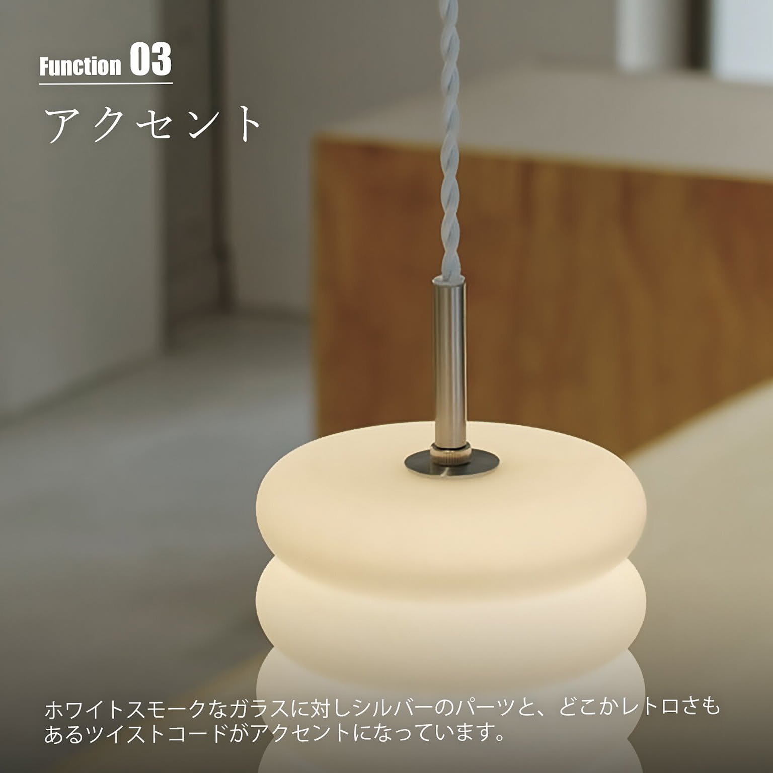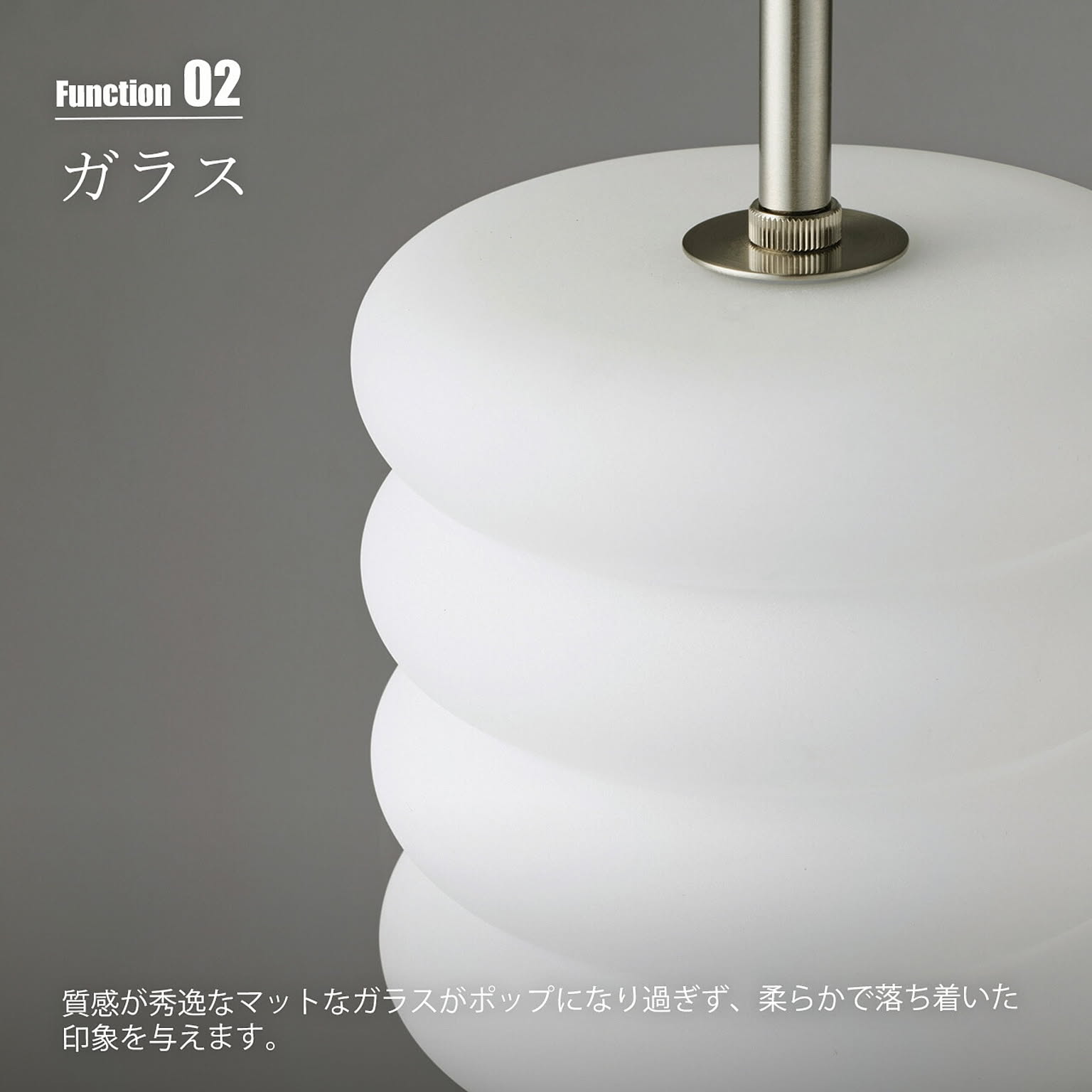 ぷくぷくと膨らんだシルエットが遊び心あふれるデザイン。視線が踊る曲線的なフォルムに、シルバーの質感がピリッとスパイスを効かせています。マットなガラスから漏れる柔らかな光が、ファニーで実験的な空間に。スペースエイジを連想させる個性的でポップなかたちが、こだわりの世界観を演出します。