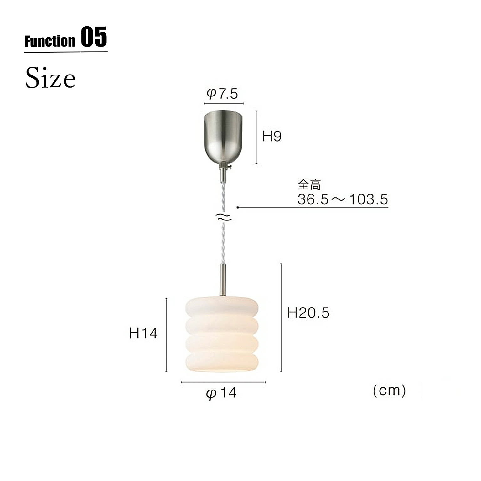 全体:φ14×H20.5cm / シーリングカバー:φ7.5×H9cm / コード全高:36.5-103.5cm