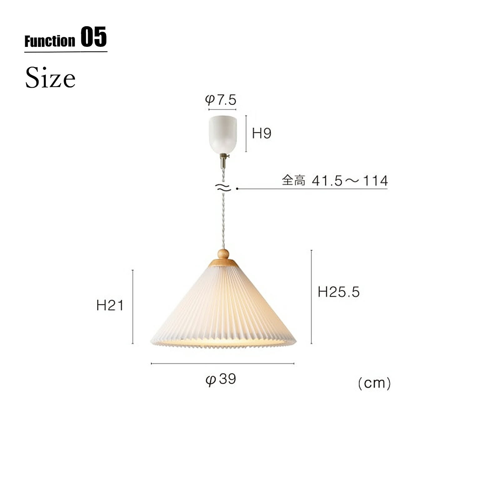 全体:φ39×H25.5cm / シーリングカバー:φ7.5×H9cm / コード全高:41.5-114cm