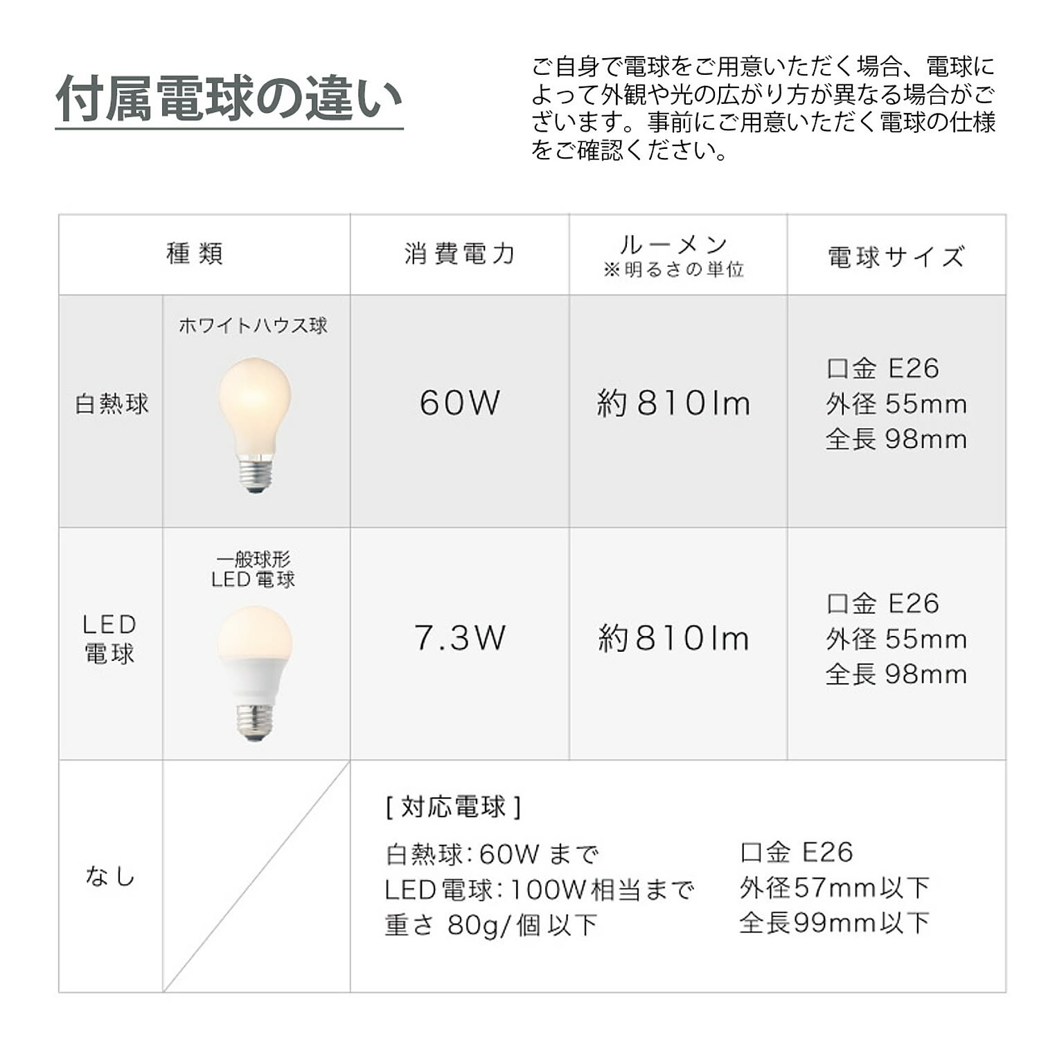 白熱球、LED球 ※80g以下の電球のみご使用できます
