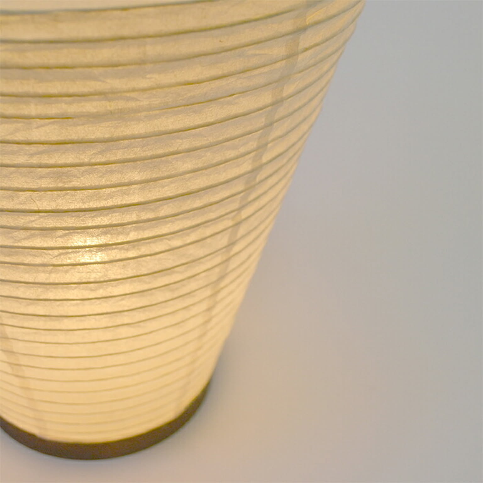 和紙には、生成の楮紙を使用しています。落ち着いた雰囲気の和紙です。木台に和紙シェードを差し込んで使用します。組み立ても簡単です。