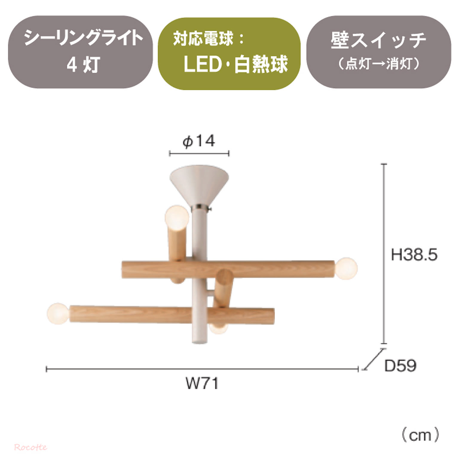 インターフォルム シーリングライト LED 白熱球 4灯 イムーブル