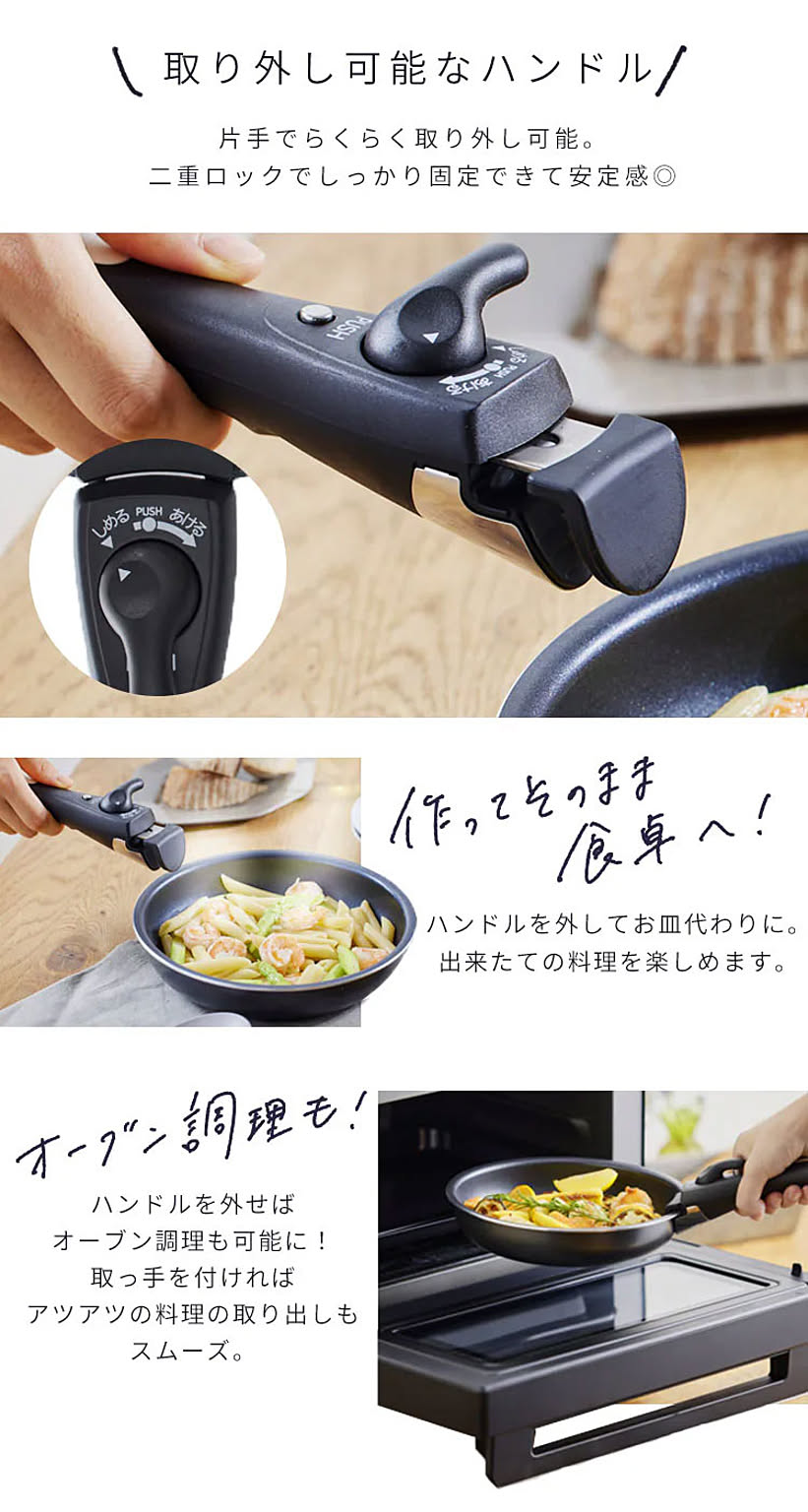 取っ手を外せばオーブン調理も可能に。