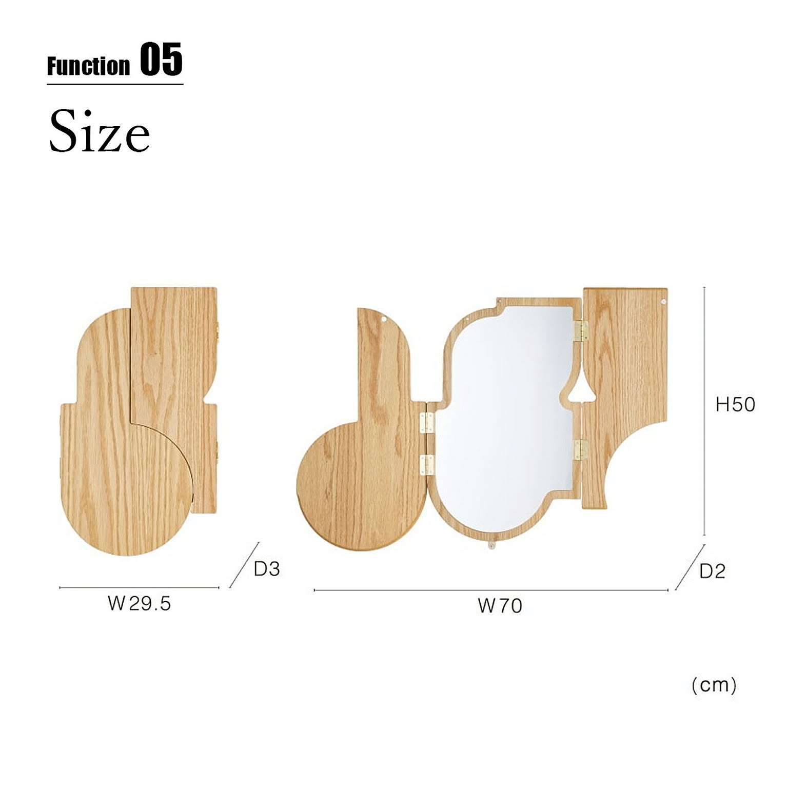 (扉を閉めた時)W29.5×H50×D3cm / (扉を開けた時)W70×H50×D2cm