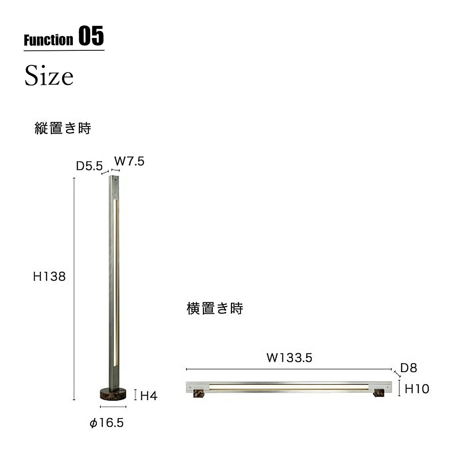 本体:W7.5×H133.5×D5.5cm / 縦置き用大理石ベース:φ16.5×4cm / 横置き用大理石ベース:W6×H5×D8cm / コード:210cm