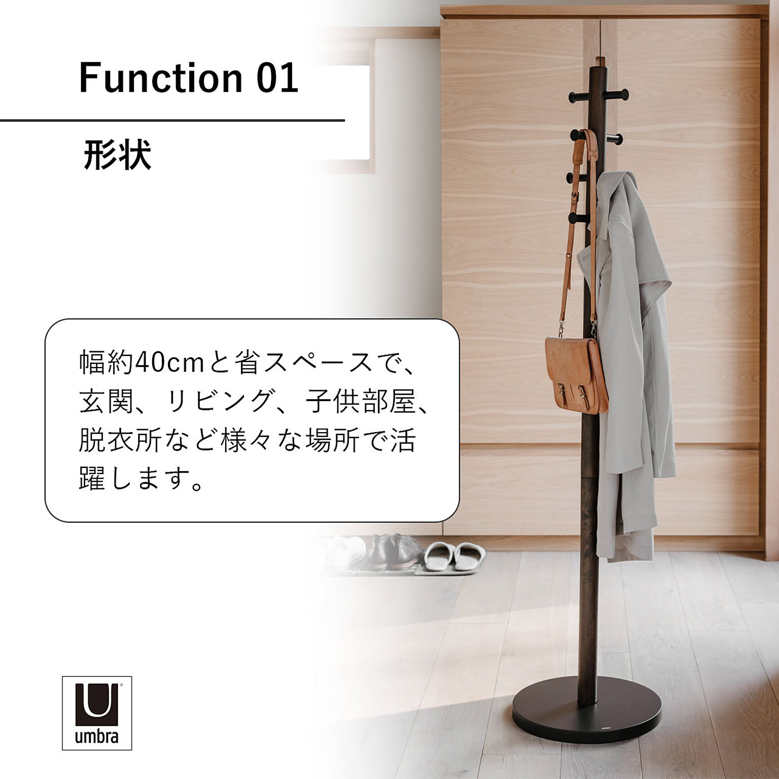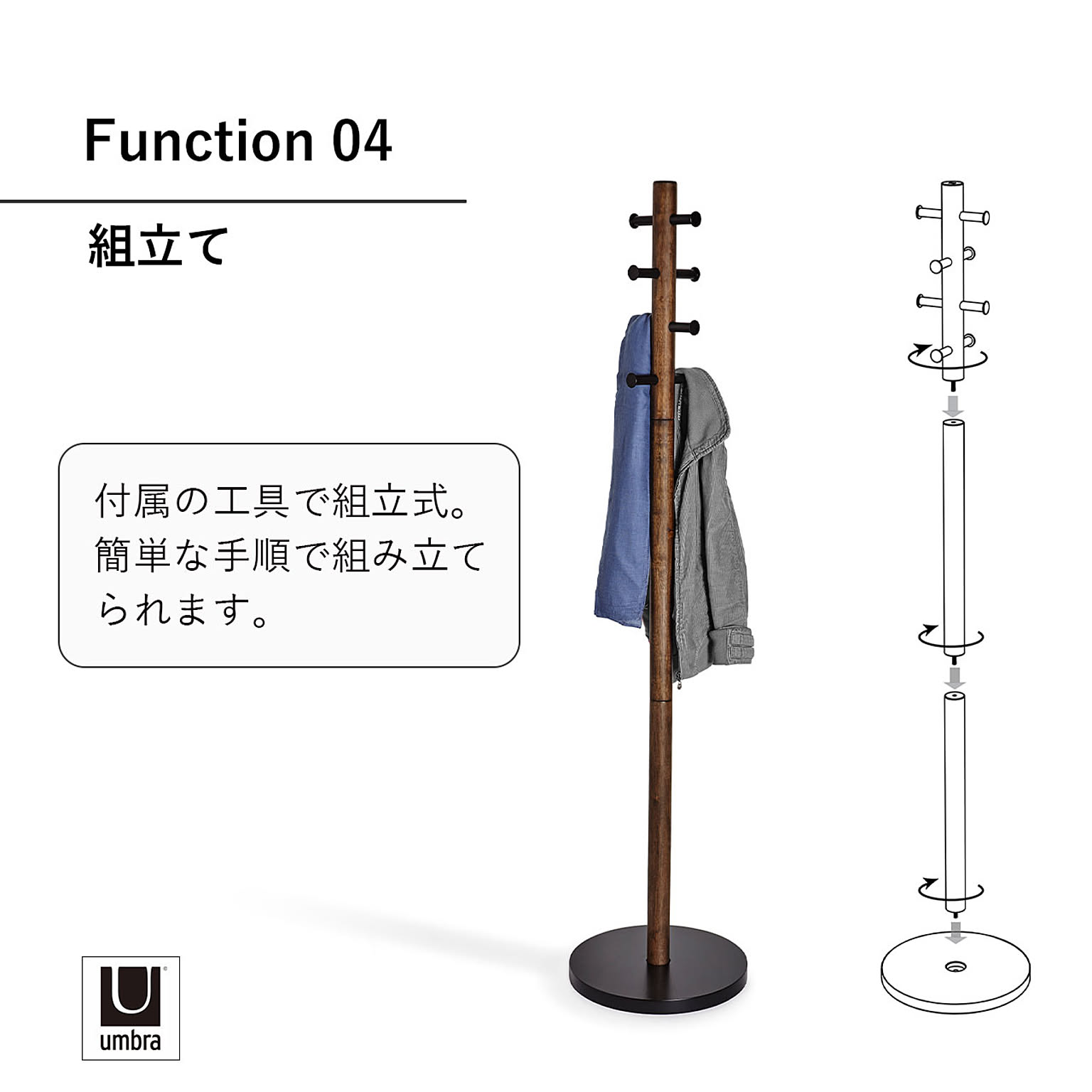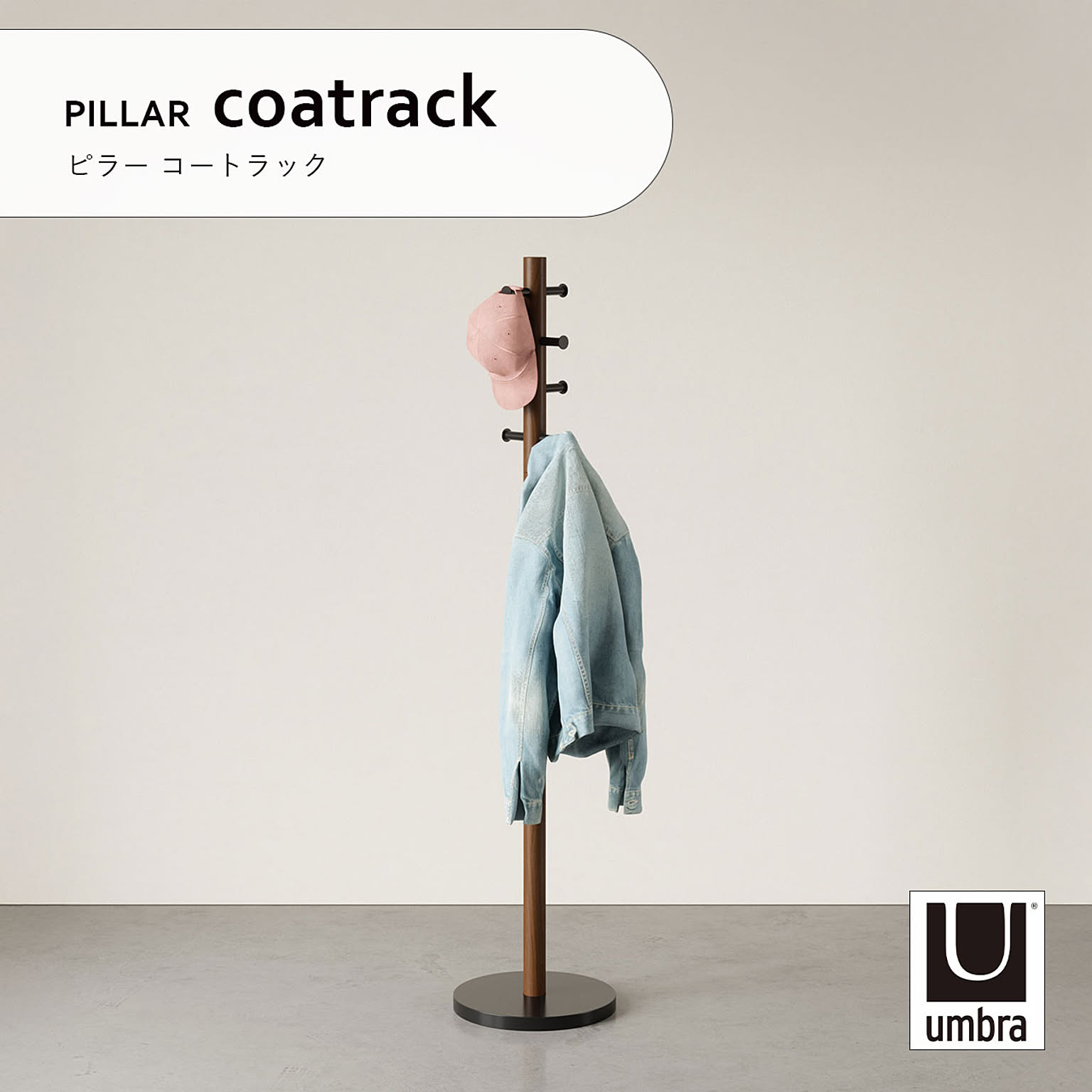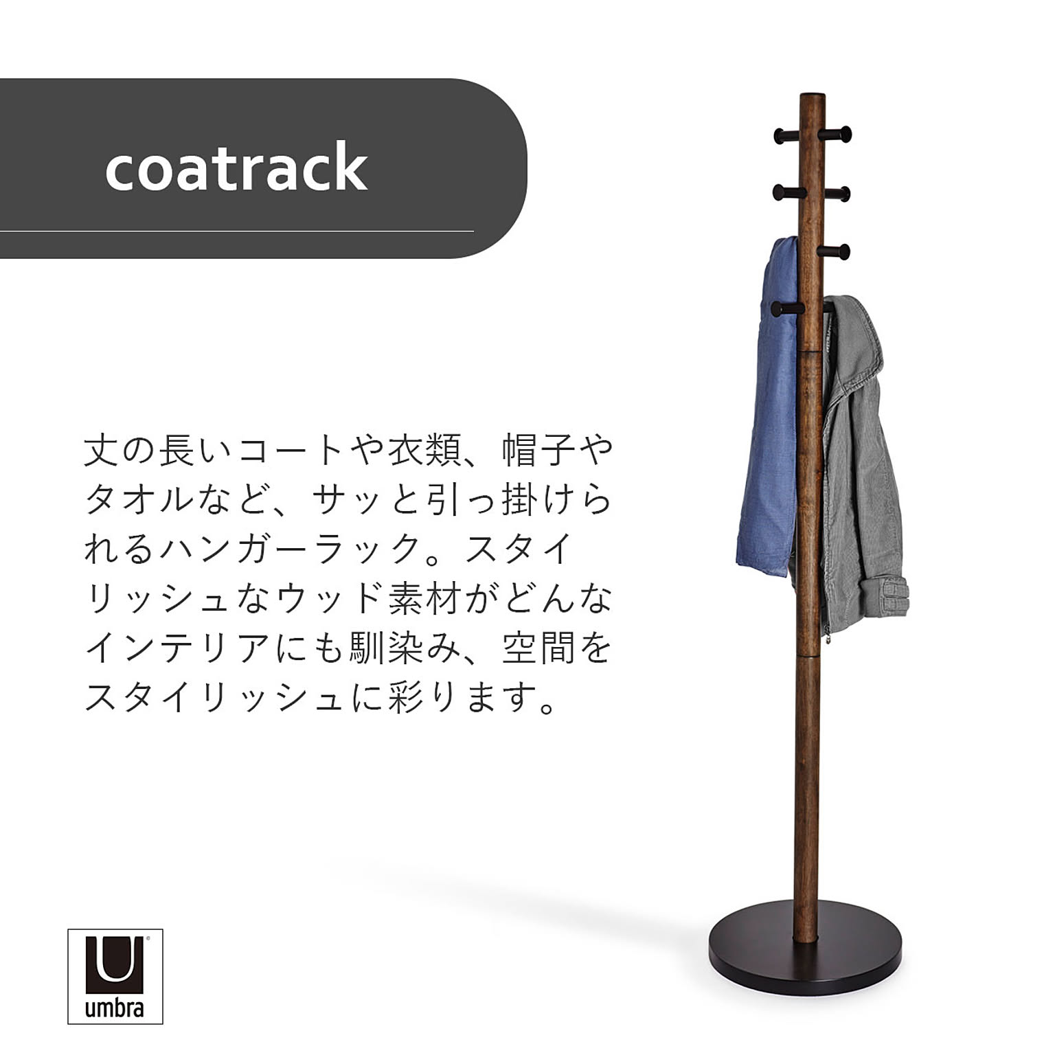 Umbra アンブラ PILLAR coatrack ピラー コートラック ハンガーラック コートハンガー 収納 玄関 子供部屋 バスルーム 木製 ウッド