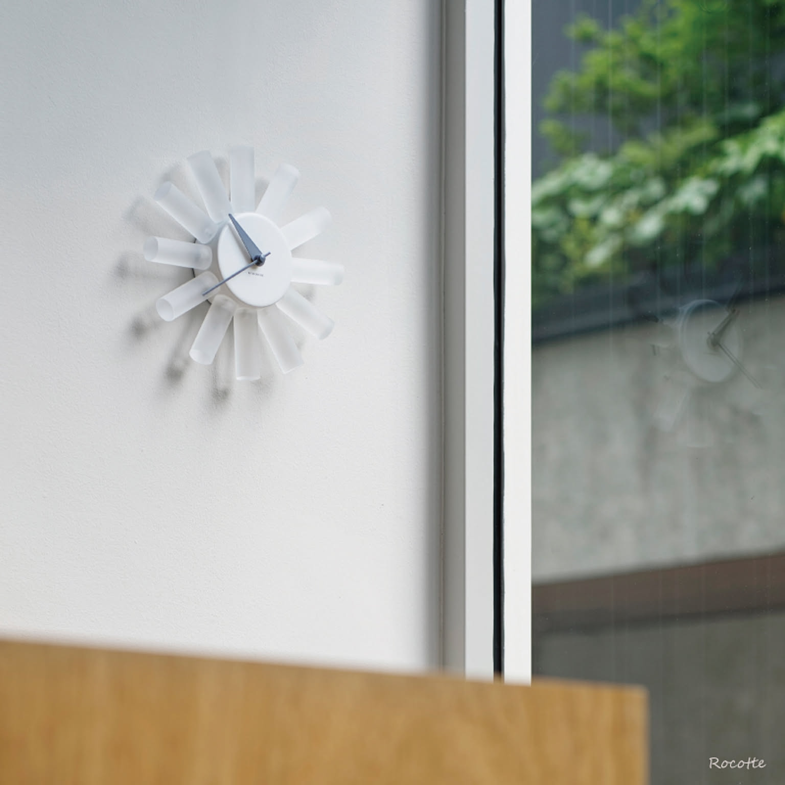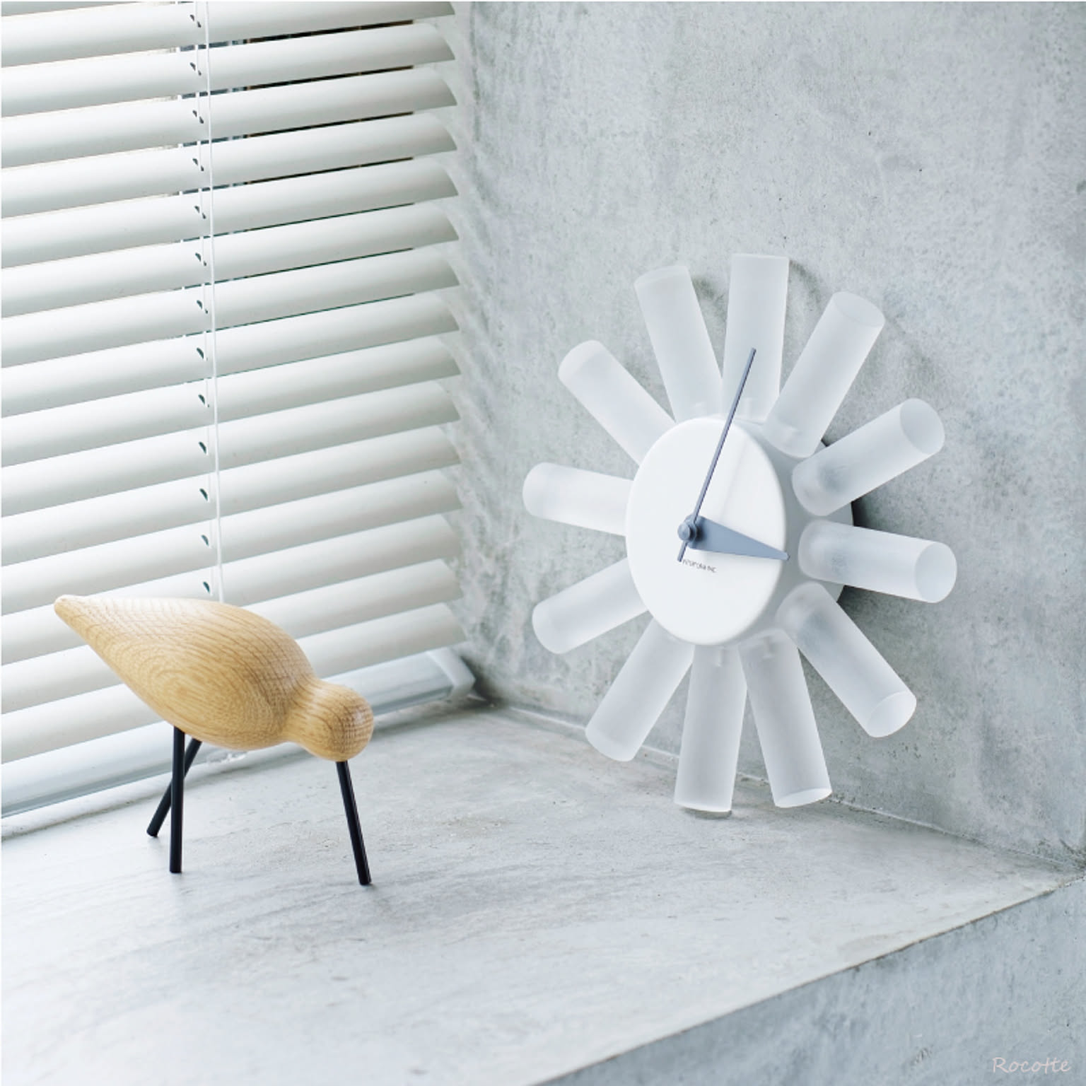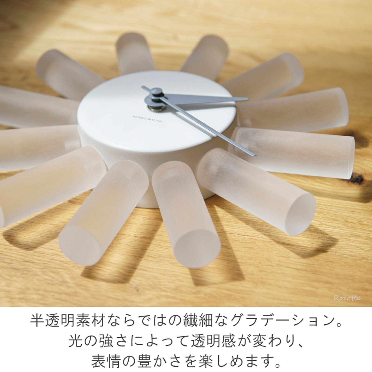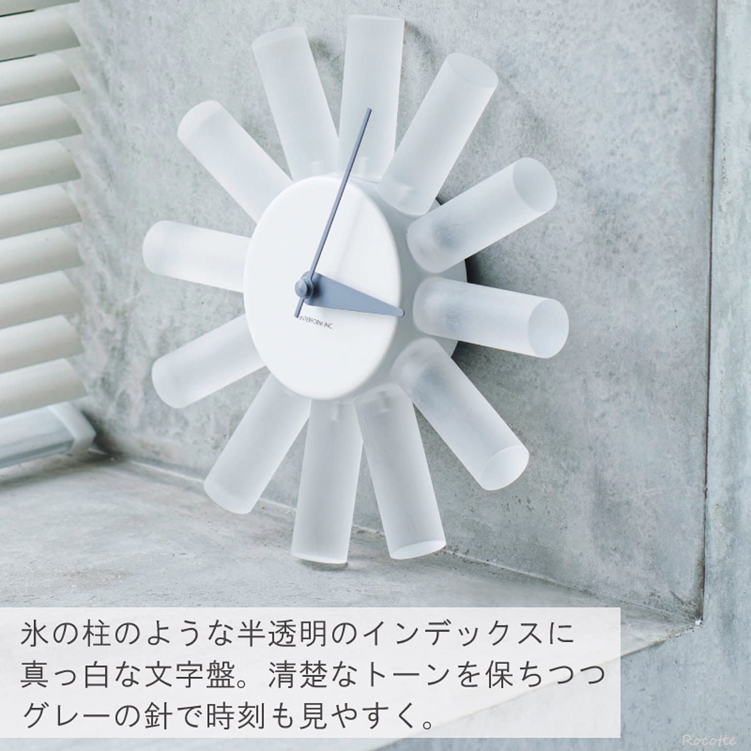 氷の柱のような半透明のインデックスが印象的な掛け時計。