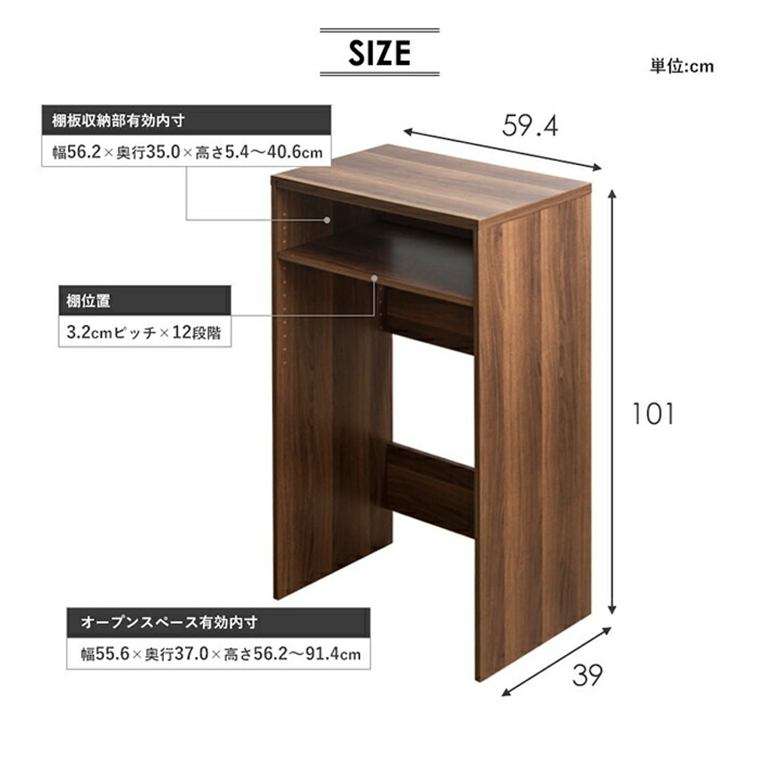 サイズ:幅59.4×奥行39×高さ101cm