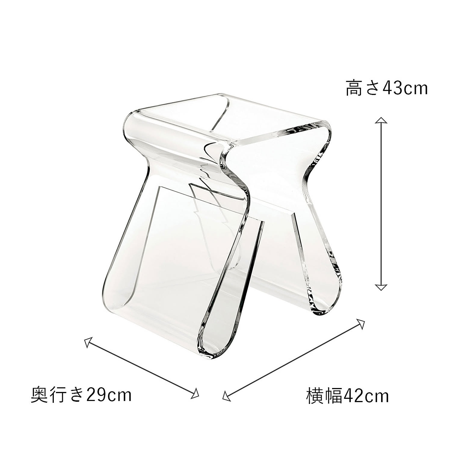 アクリル製のクリアなボディがスタイリッシュなスツール。脚部分に雑誌、本、レコードなどを収納することが可能。サイドテーブル、マガジンラックとしてもお使いいただけます。
