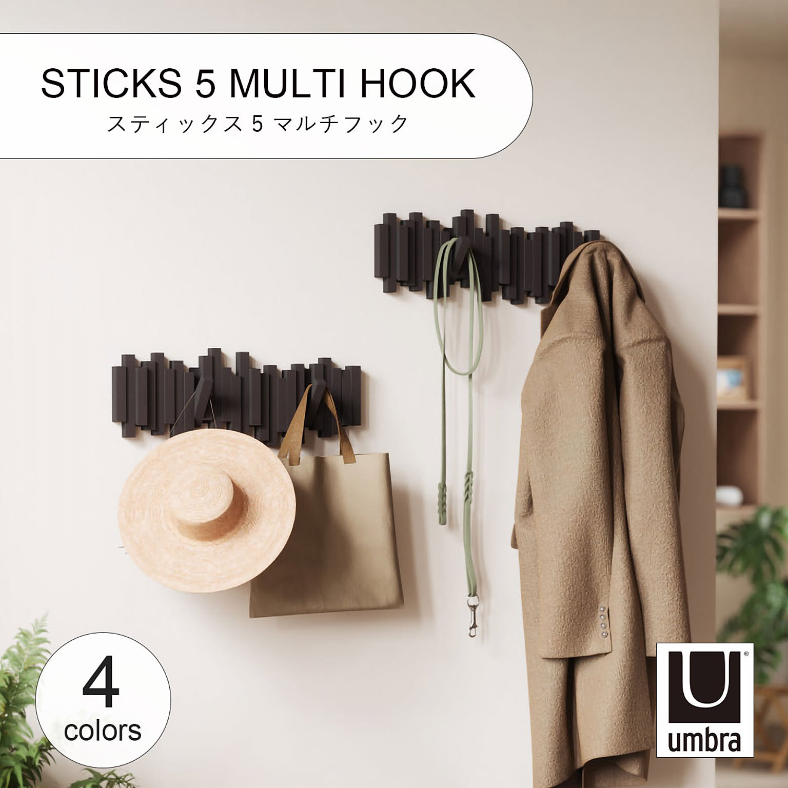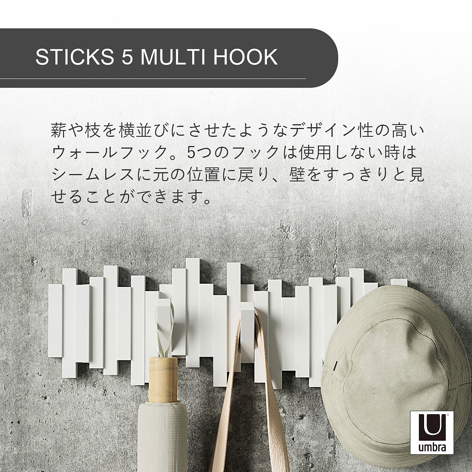 Umbra アンブラ STICKS 5 MULTI HOOK スティックス 5 マルチフック ハンガーフック 壁面収納 コートハンガー バッグハンガー インテリア 収納