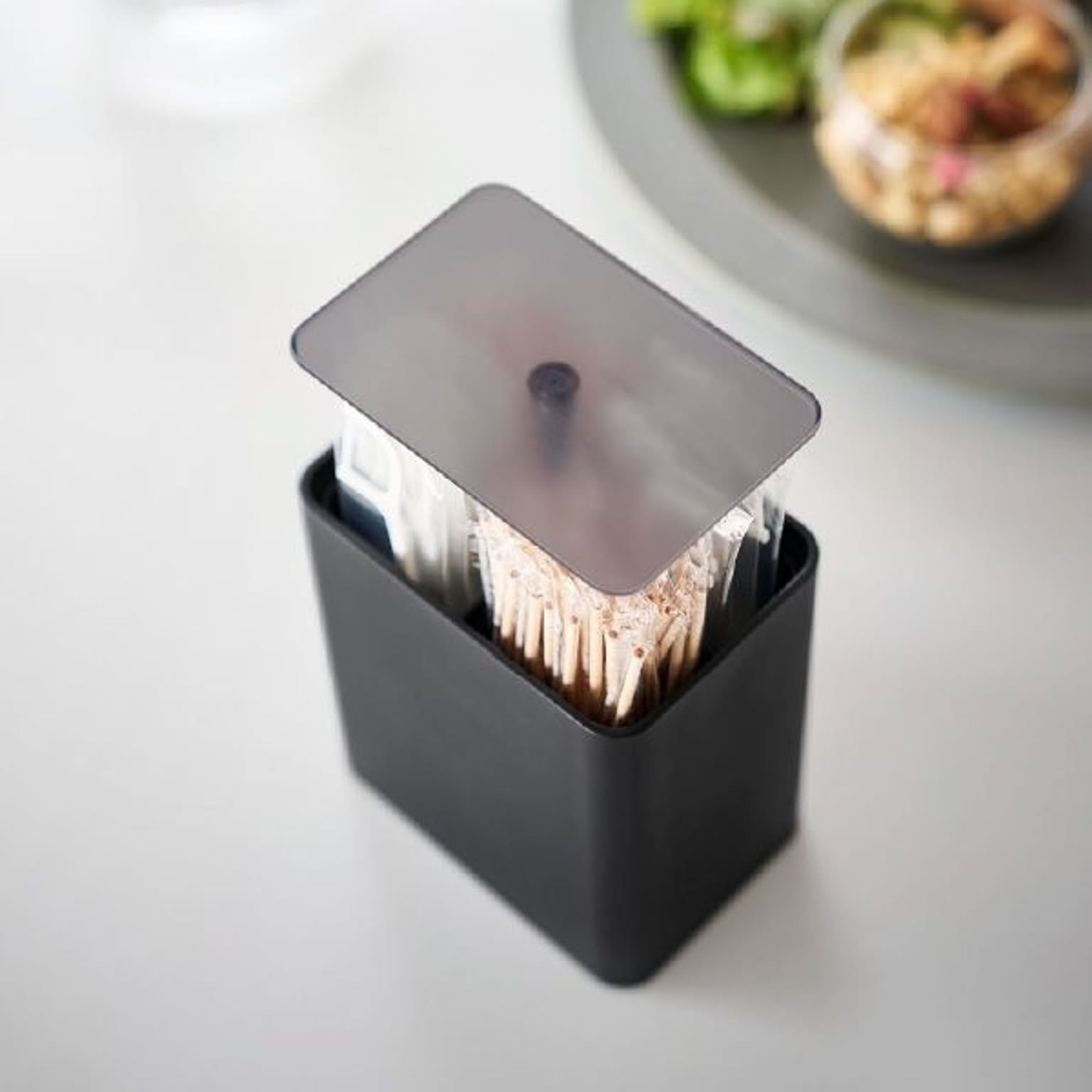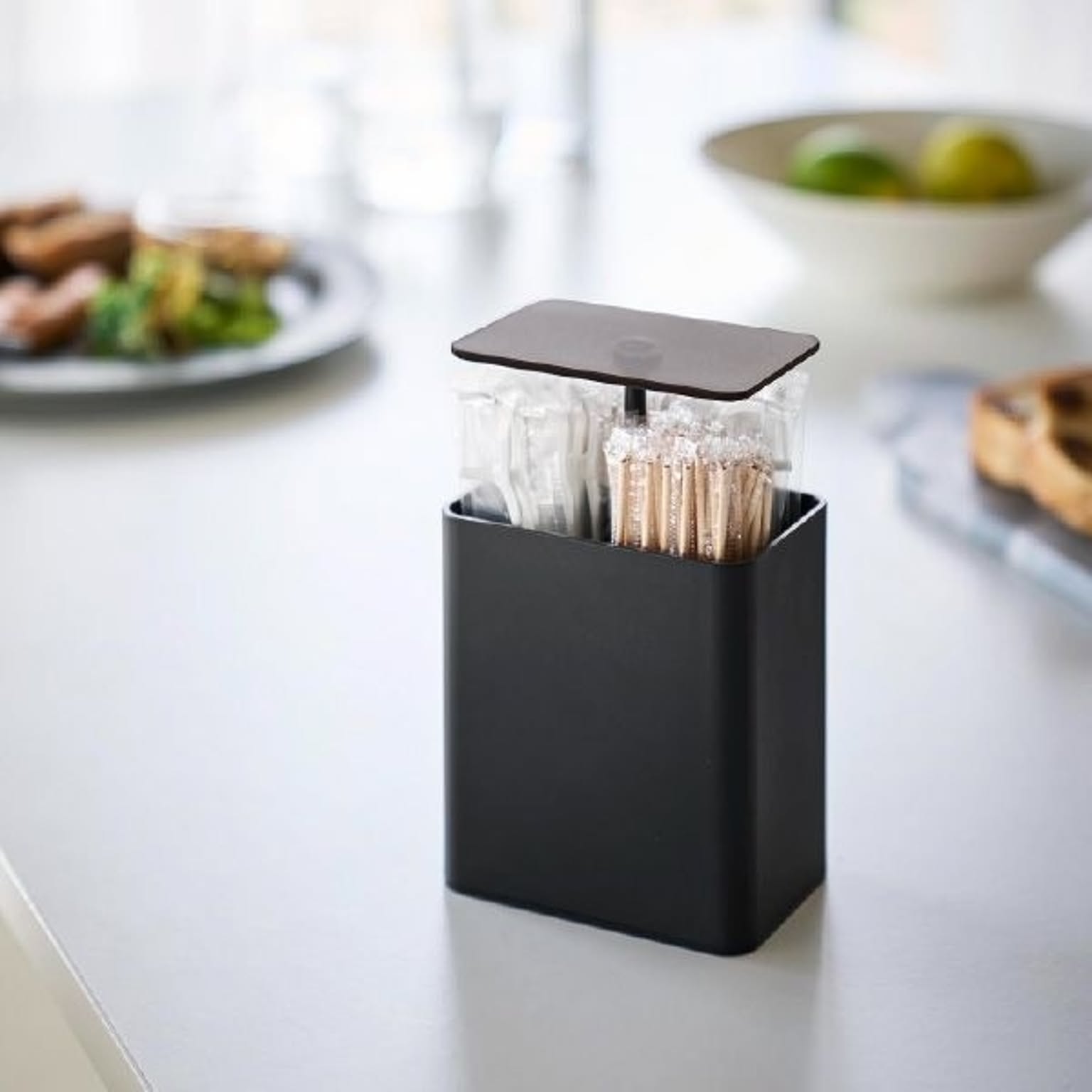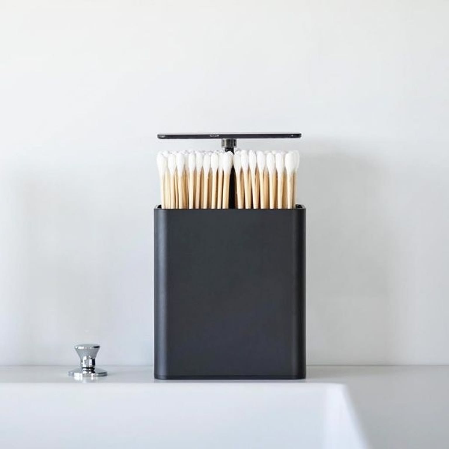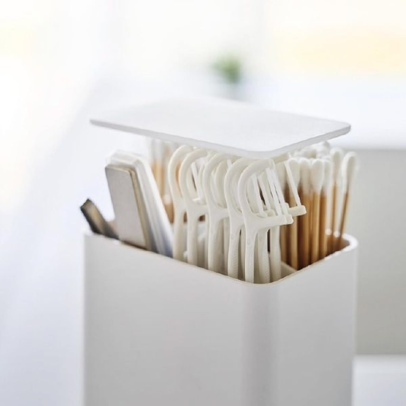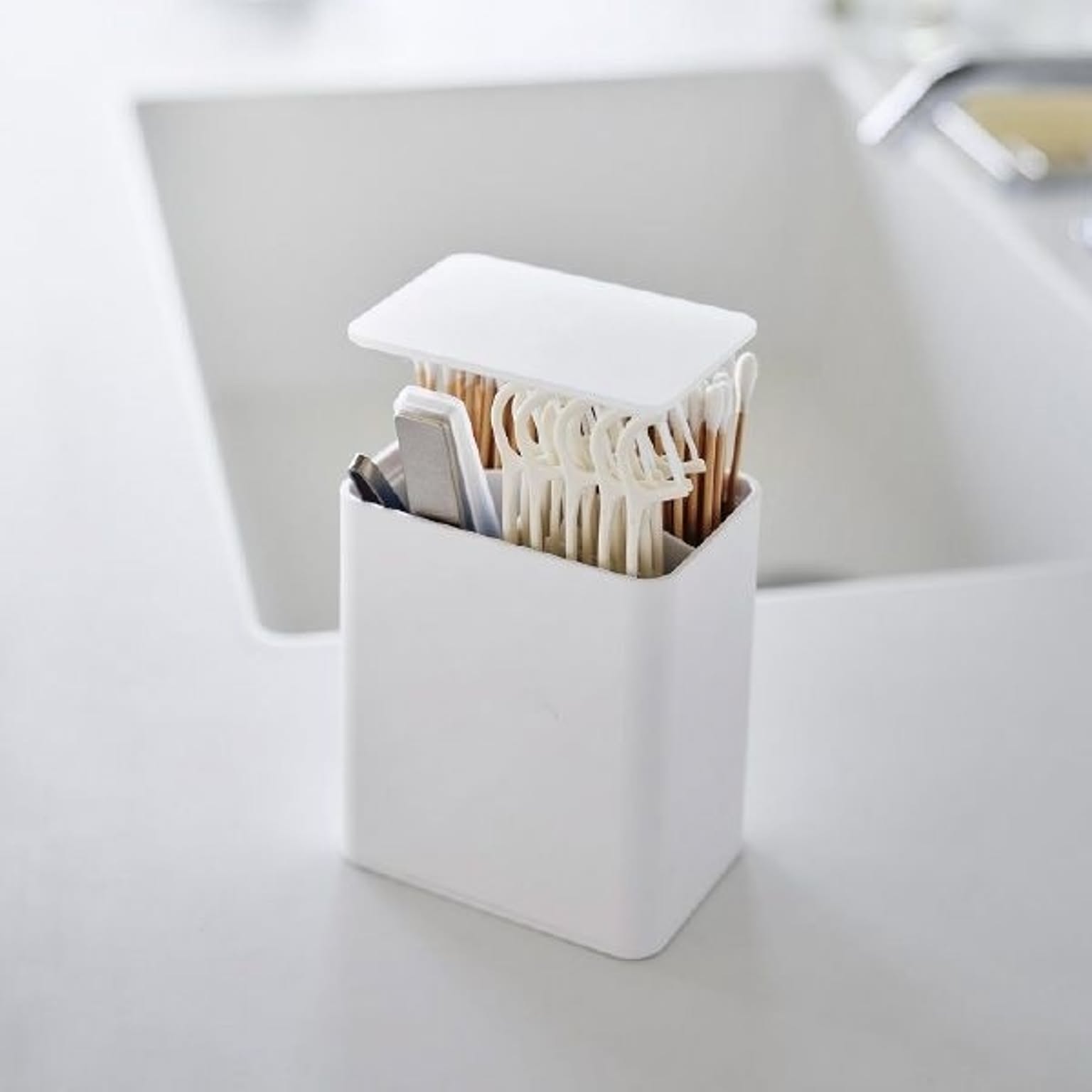 綿棒をまとめて収納できる、towerシリーズのおしゃれなポップアップ式綿棒ケースです。スリムなフォルムの綿棒入れに、綿棒をおよそ200本収納できます。コンパクトながら大容量で、綿棒をすっきりまとめられる綿棒ケースです。おしゃれな綿棒ケースに詰め替えることで、生活感をオフ。洗練された空間を演出できるスタイリッシュな蓋付き綿棒入れは、洗面台まわりを整えたい方にもぴったりの綿棒入れです。綿棒ケースは便利なプッシュ式。蓋をワンプッシュすることで収納ポケットが自動的に持ち上がる構造です。ワンタッチかつ綿棒を片手で取り出せる、日常使いしやすい綿棒入れです。収納ポケットは仕切り付きなので、爪切りやピンセットなどの衛生用品を仕分けながら収納可能。綿棒以外もすっきりまとめられる、多用途の綿棒入れとして活躍します。綿棒ケースの蓋は半透明で残量がわかりやすく、補充のタイミングも一目で確認できます。蓋は取り外せるので、綿棒の補充もスムーズに行えます。綿棒ケースとしてはもちろん、爪楊枝入れやフロスケースとしても使える万能な綿棒入れです。小物収納として幅広く使えるため、「見せない収納」を叶える綿棒入れとしてもおすすめです。山崎実業 タワーシリーズの綿棒ケースは、お手入れしやすいプラスチック製。ホワイトとブラックの2色展開で、様々なインテリアに溶け込みます。おしゃれな空間づくりにぴったりな綿棒入れで、毎日の生活を快適に。