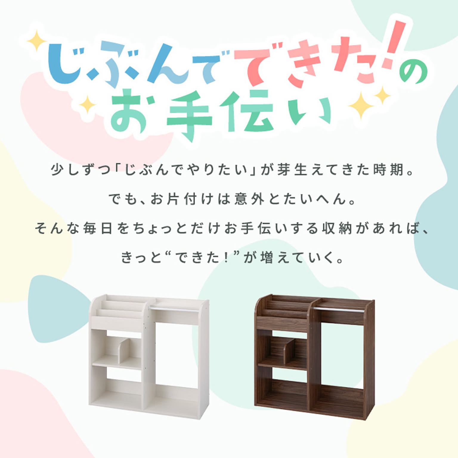 「どこに何を片付ける」のルールが決めやすく、お子様の自立心をサポートし楽しくお片付けができる収納用品です。