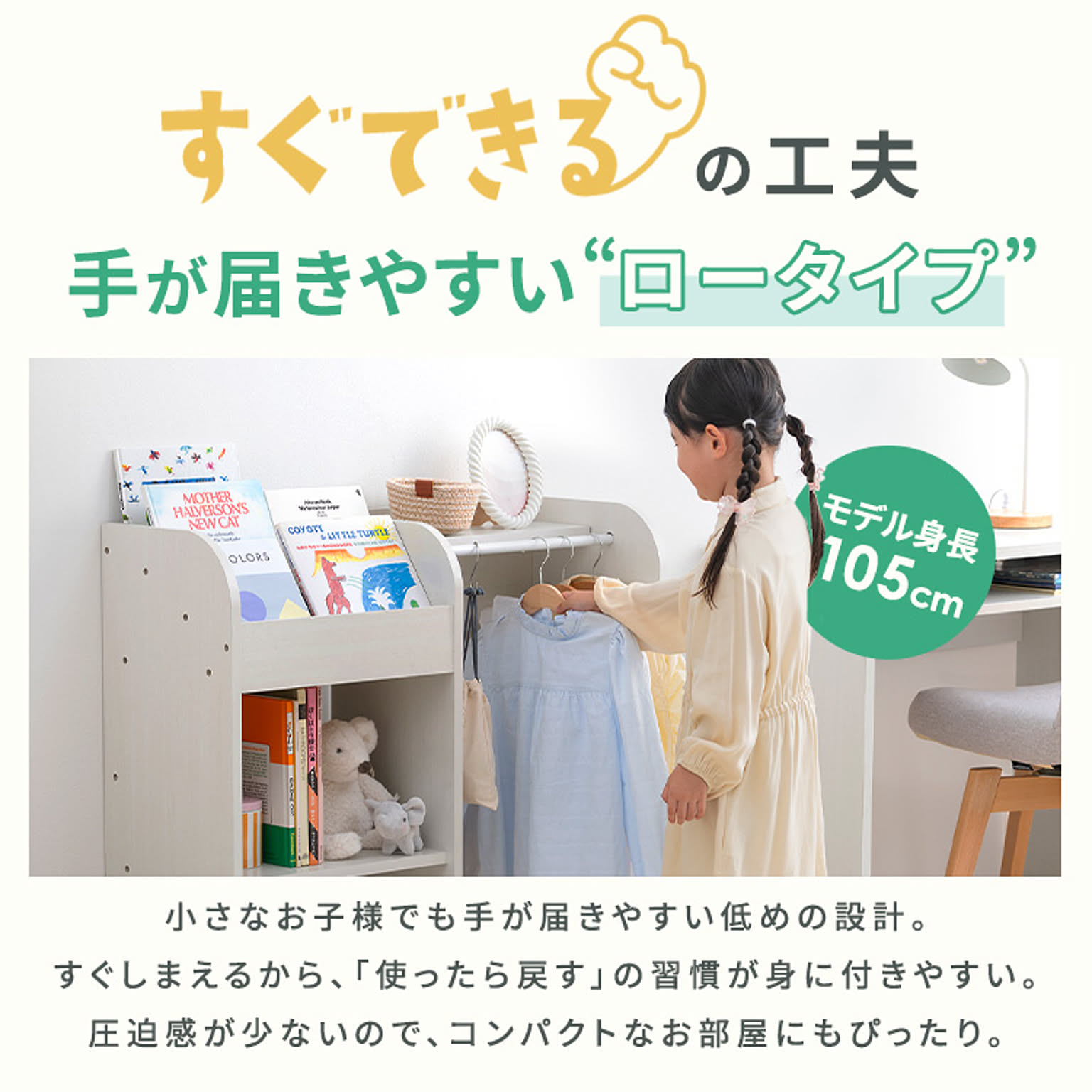 お子様でも取り扱いやすい高さのため、制服などを自分で片付けられる設計!
