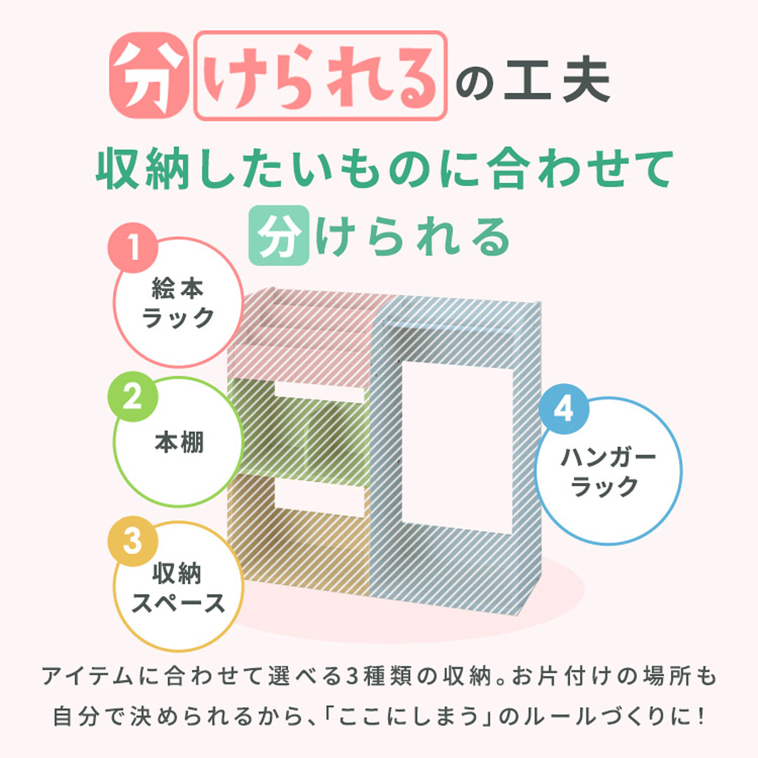 衣類、絵本、おもちゃなどお子様の生活用品がこれ1台で収納できる!