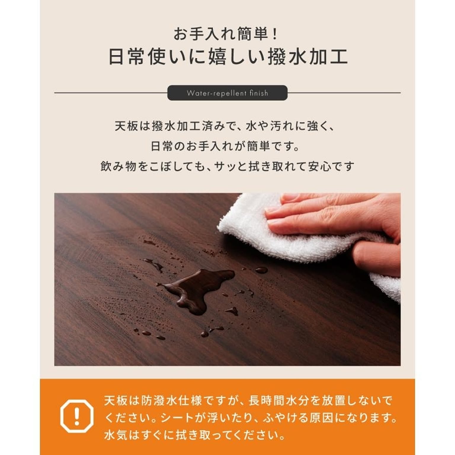 ※天板は防水仕様ですが、長時間水分を放置しないでください。シートが浮いたり、ふやける原因になります。水気はすぐに拭き取ってください。