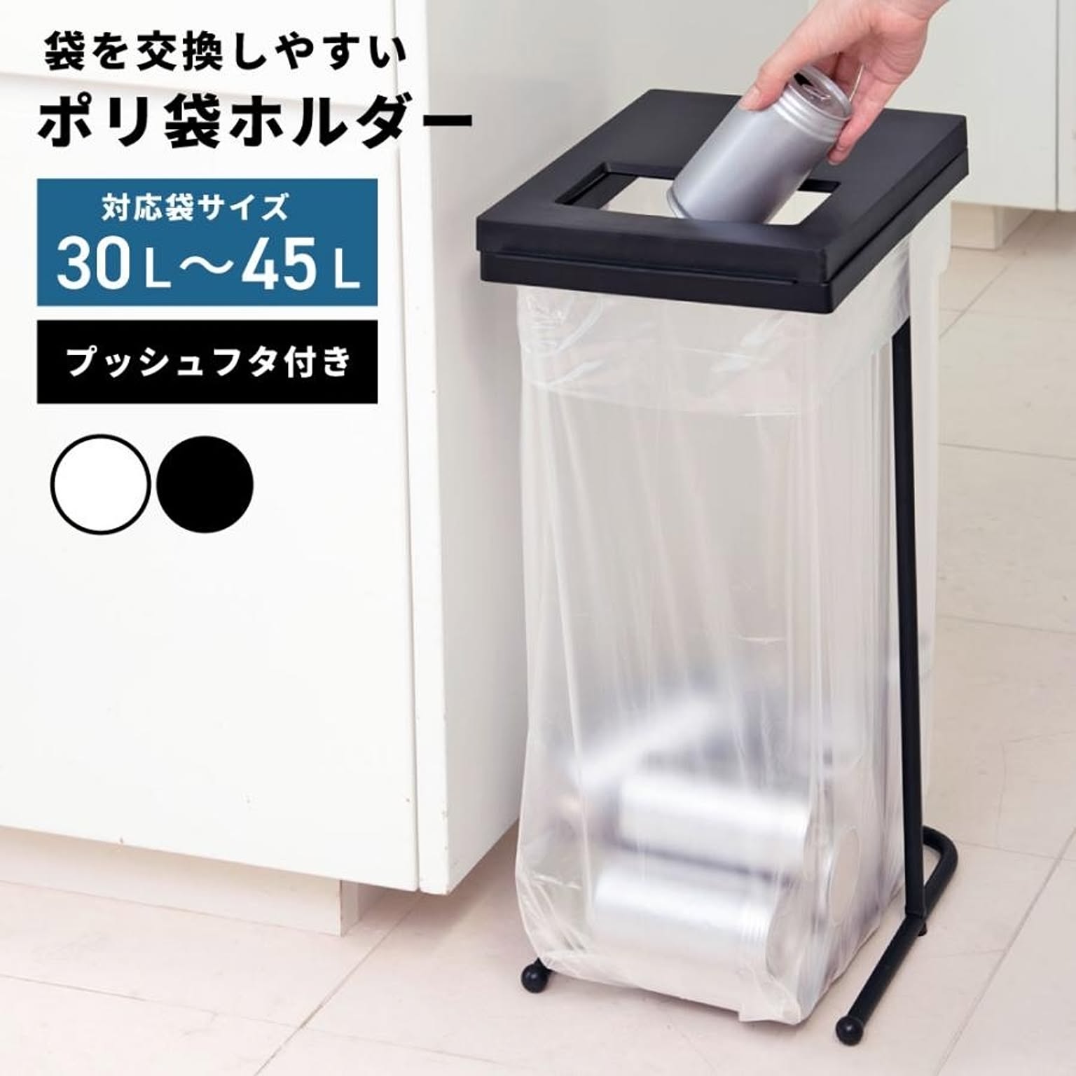 袋を交換しやすいポリ袋ホルダー 【検索キーワード】 ゴミ箱 スリム 45リットル 蓋つき スリム 軽い 軽量 ダストボックス キッチン リビング 室内 フタ付き シンプル 縦型 ブラック ホワイト