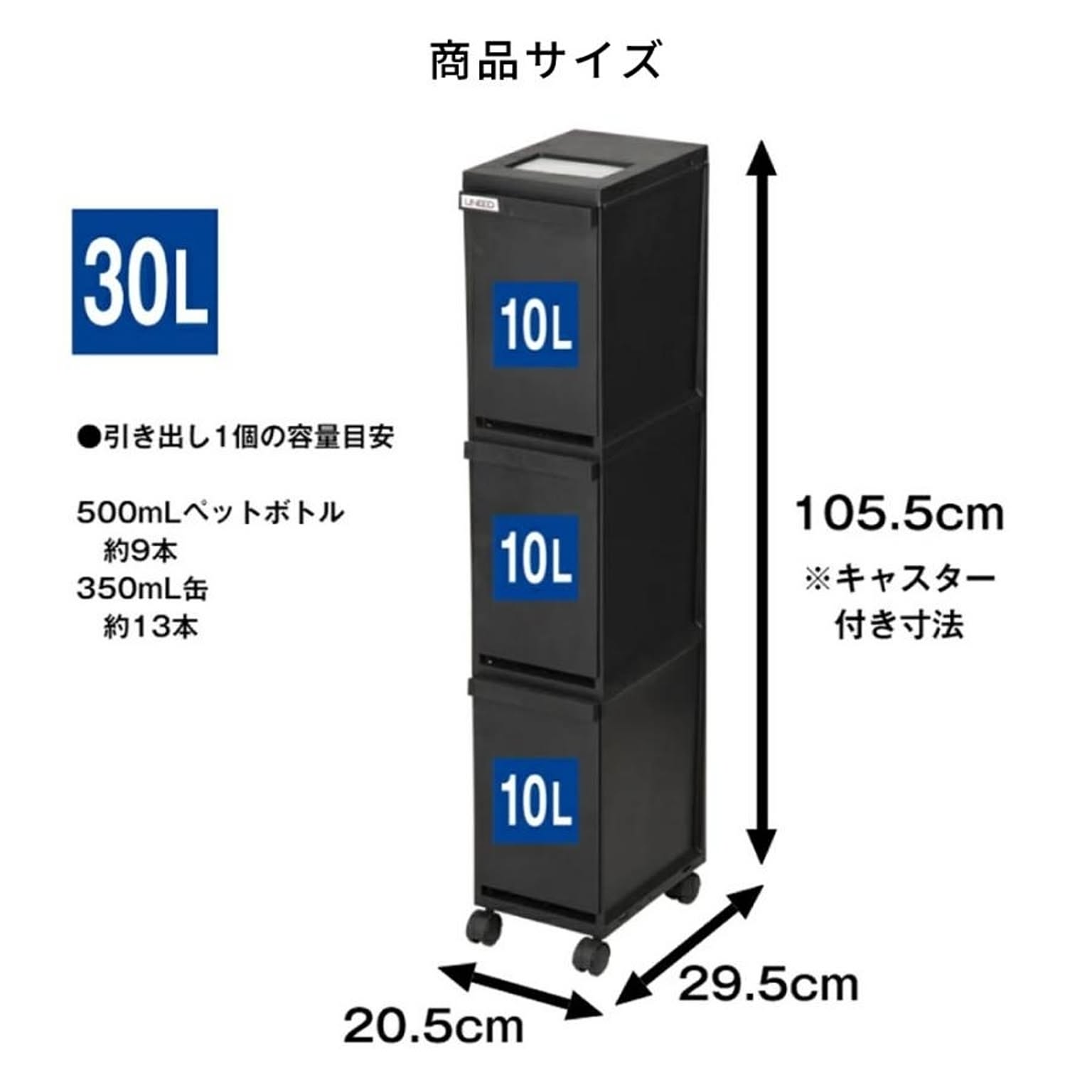 省スペースで使える縦型分別ゴミ箱 【検索キーワード】 ゴミ箱 スリム 30リットル 30L 蓋つき 分別 スリム キャスター付き 軽い 軽量 ダストボックス キッチン リビング フタ付き シンプル 縦型 ブラック ホワイト
