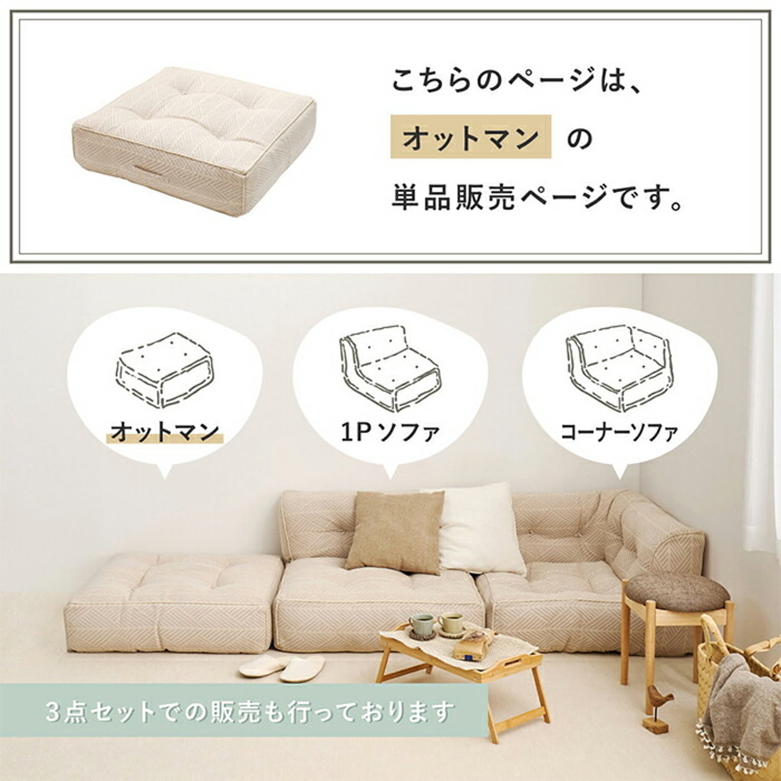 インド綿100%のやわらかく優しい風合いのフロアソファ『レトア』。空間を広くみせるロースタイルに、レイアウトも自由自在!単品使いはもちろん、ゆったりのロングソファやカウチソファ風など、用途やお部屋に合わせて使えるマルチなソファです。裏面に面ファスナー付きで、ソファ同士がしっかりとくっついてズレの心配もありません。