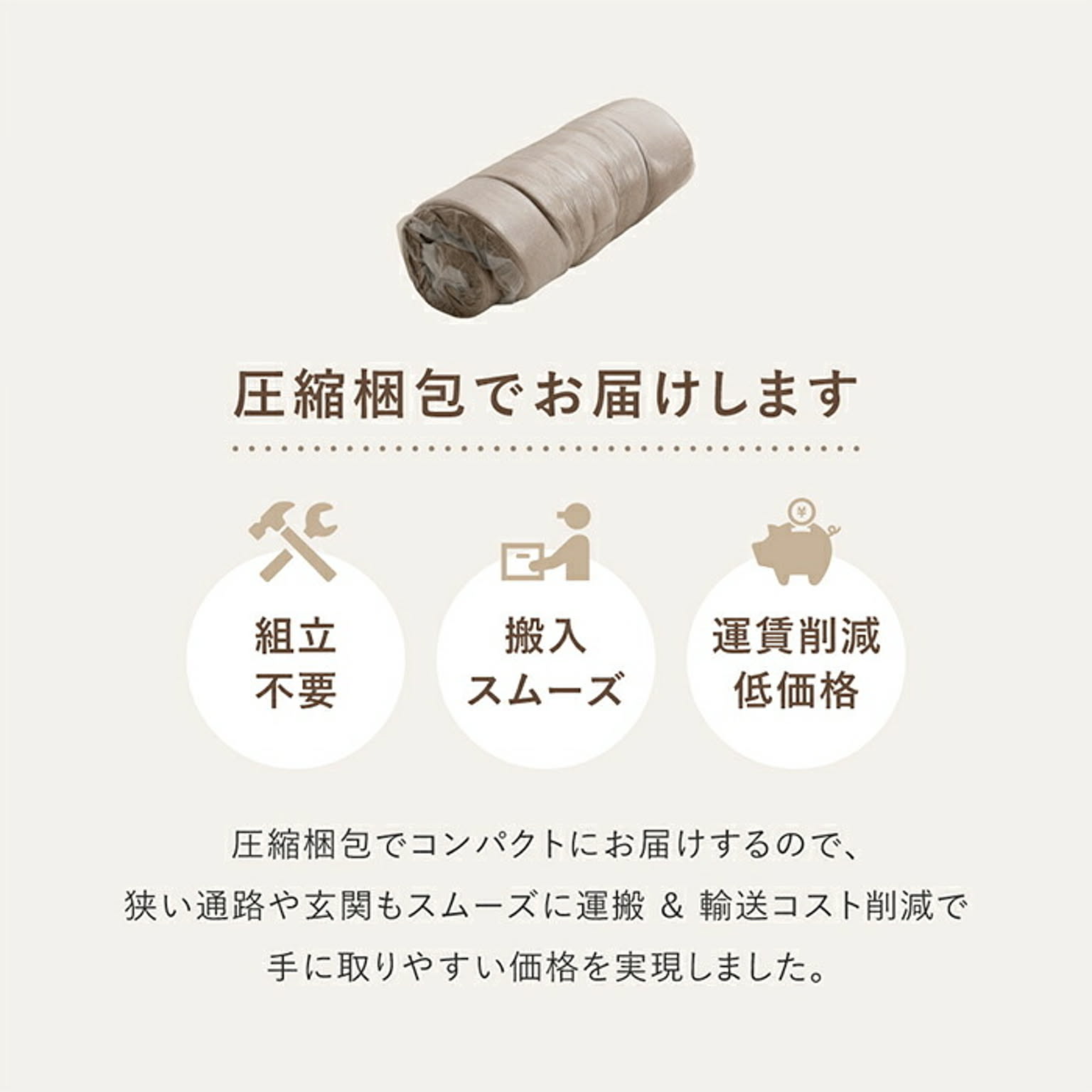 注意事項:開封後、製品が元の形に戻るまでの時間は、環境などの条件によって異なります。また、圧縮によるシワが見られる場合がありますが、ご使用いただくうちに自然になじみます。