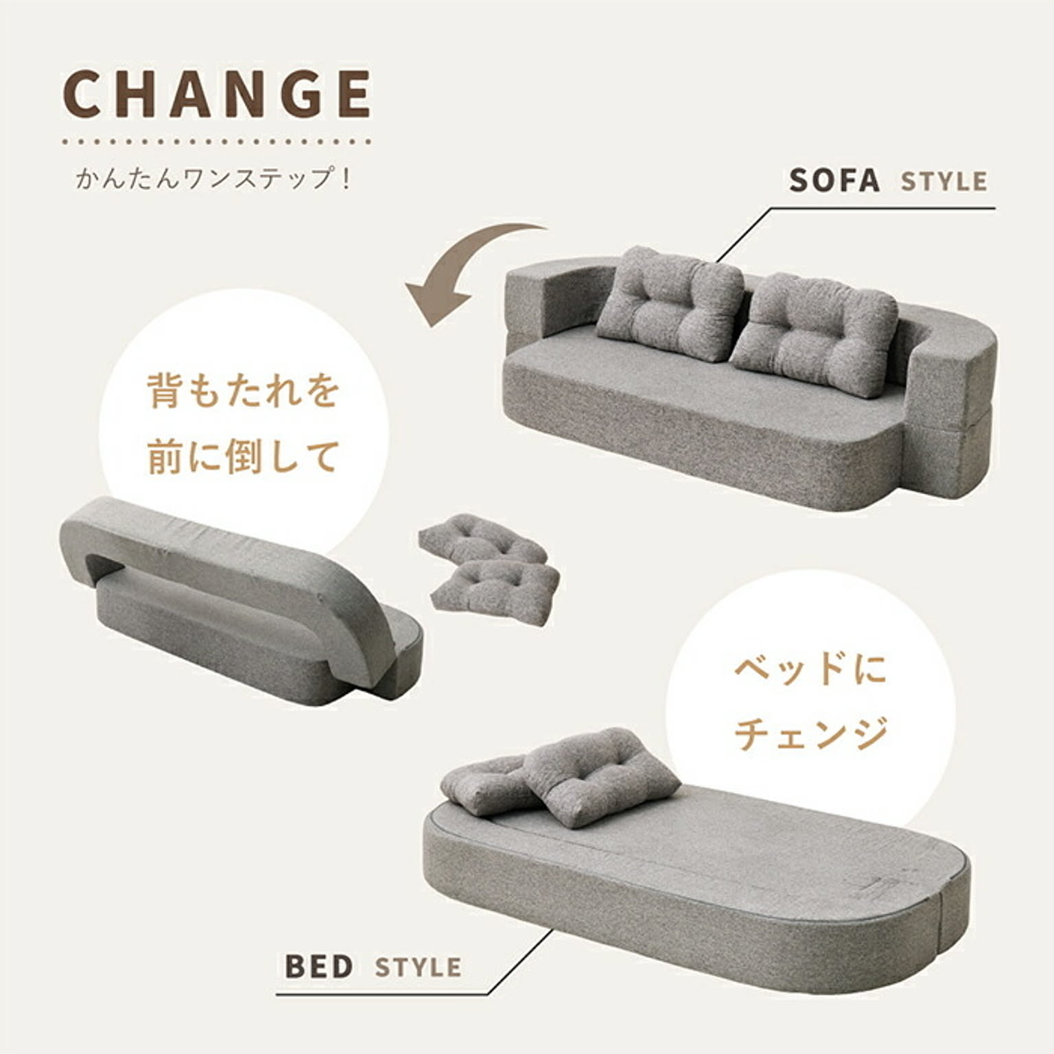 ソファにもベッドにもなる2WAYデザインで、ワンルームやひとり暮らしのリラックスタイムにぴったりのアイテムです。