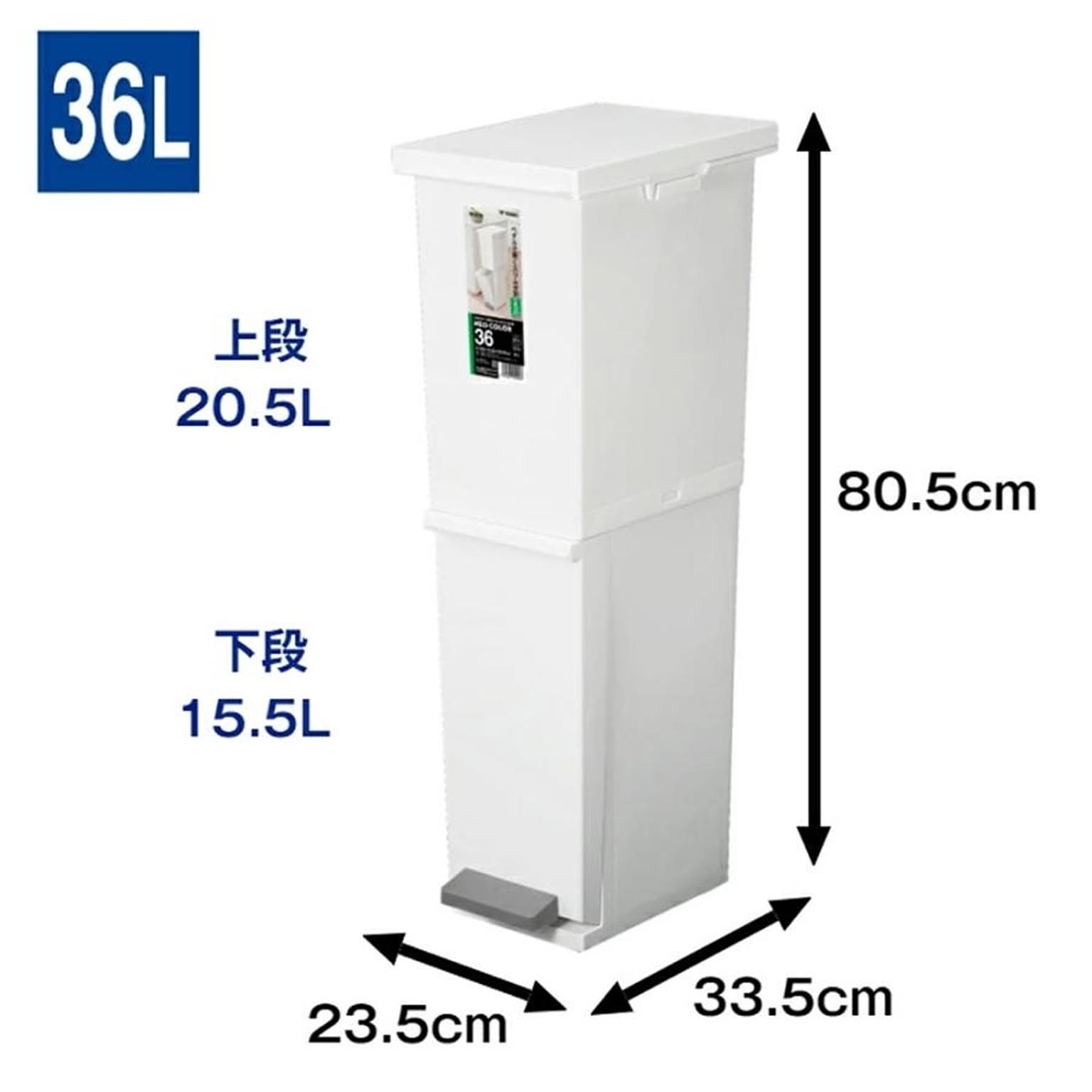 20.5L+15.5L の合計36L 2段ダストボックス 【検索キーワード】 ゴミ箱 スリム 36リットル 36L 蓋つき 分別 2段 スリム ダストボックス キッチン リビング フタ付き シンプル 縦型 ホワイト