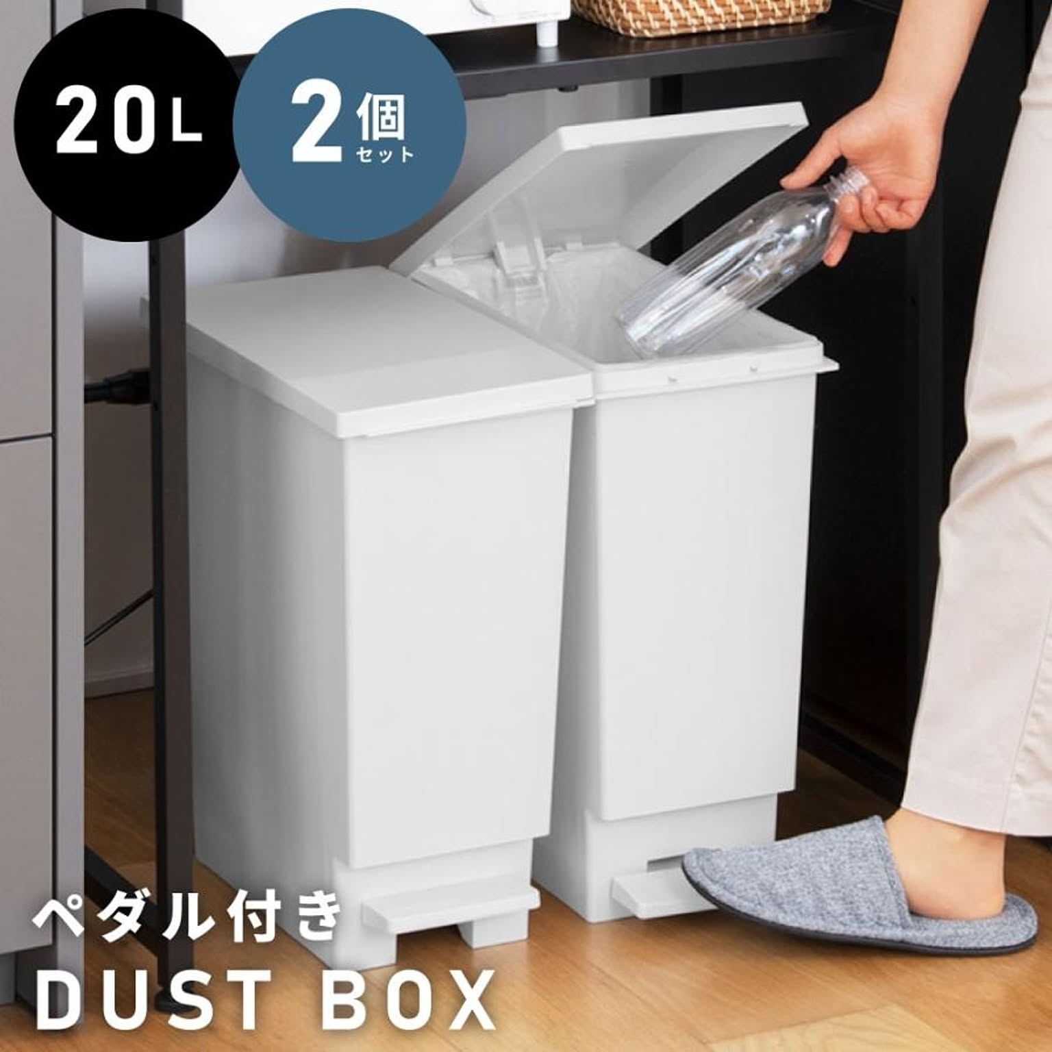 スリムな縦型20L ダストボックス 【検索キーワード】 ゴミ箱 スリム 20リットル 20L 蓋つき 分別 2個セット スリム ダストボックス キッチン リビング フタ付き シンプル 縦型 ホワイト