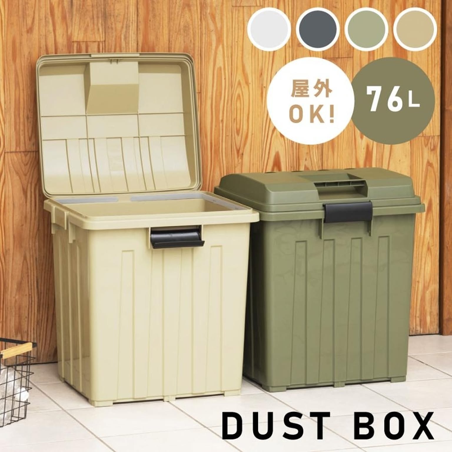 76Lのダストボックス。 園芸用品やキャンプ用品もしまっておけます。 差し込むだけで連結OK! 【検索キーワード】 ゴミ箱 スリム 76リットル 76L 蓋つき 屋外 ダストボックス おしゃれ フタ付き シンプル ベージュ カーキ