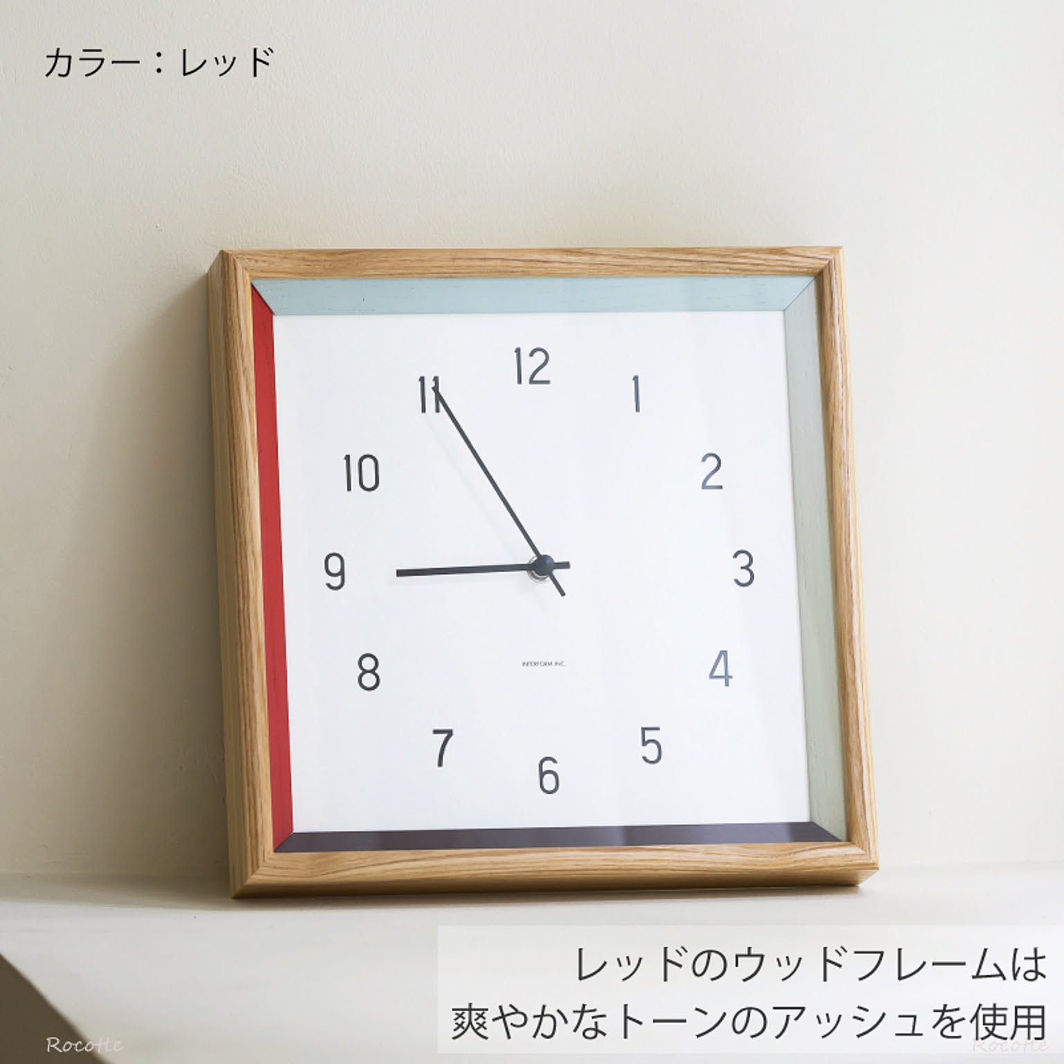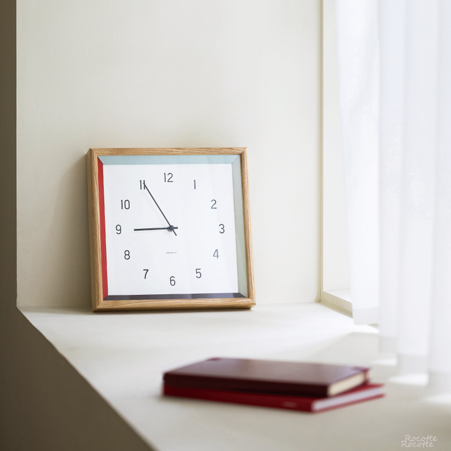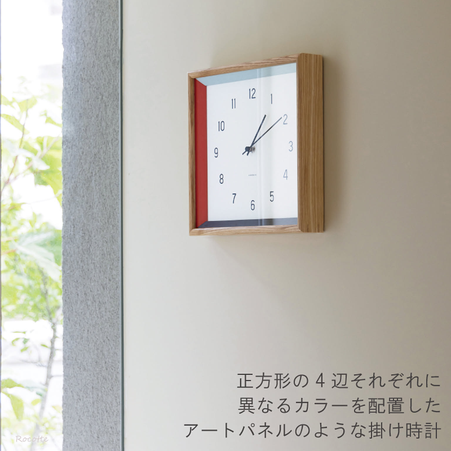四辺それぞれ異なる色を配置したアートのような掛け時計。