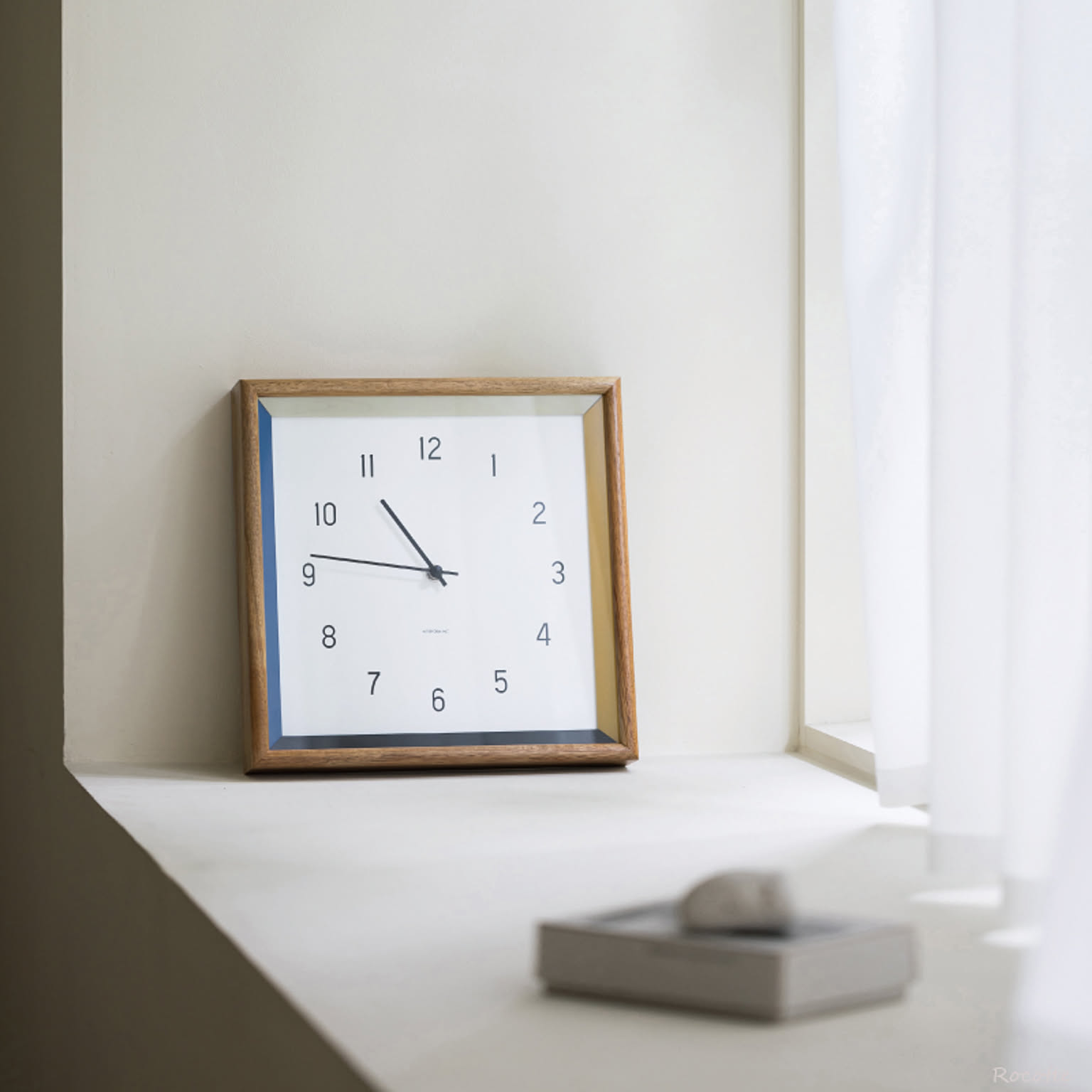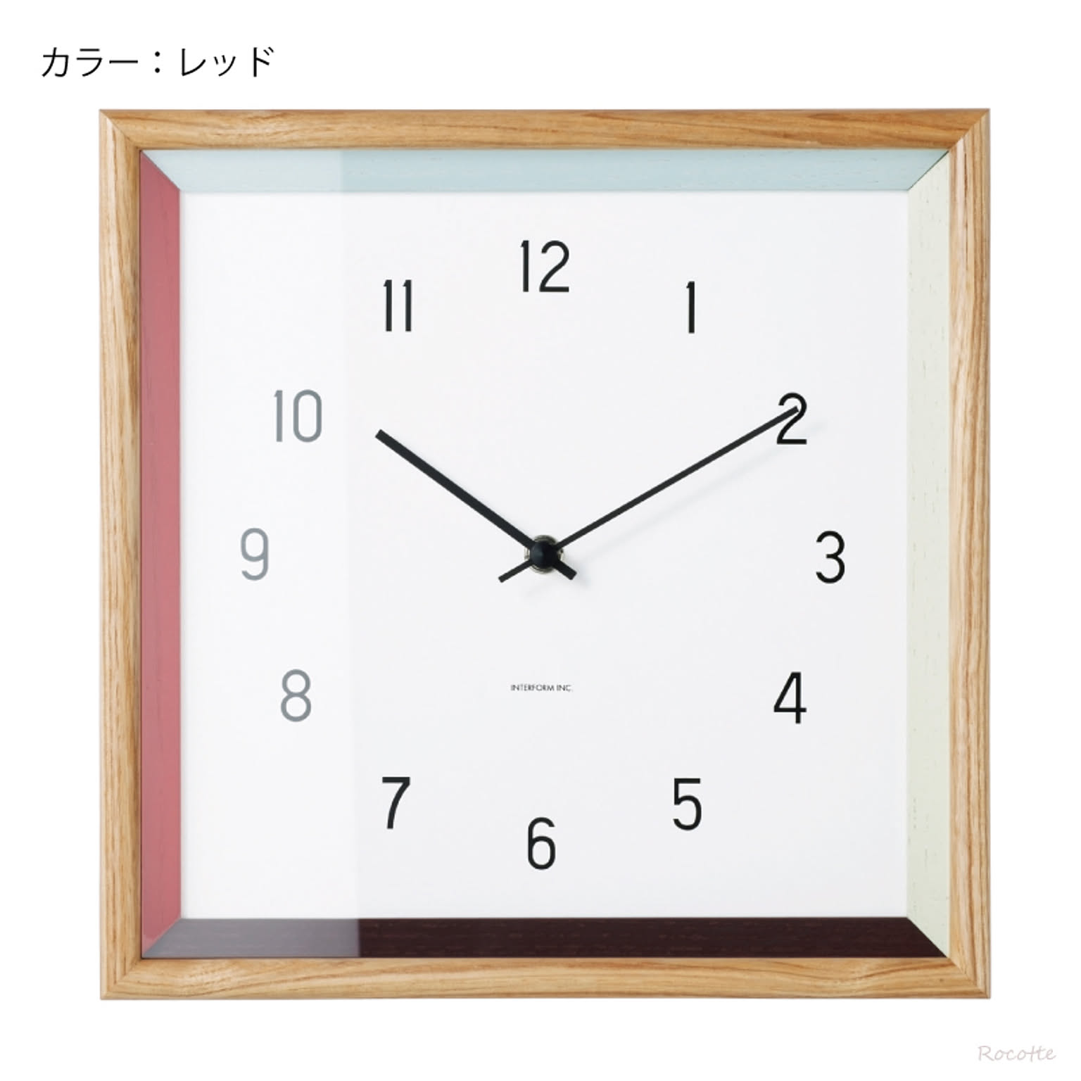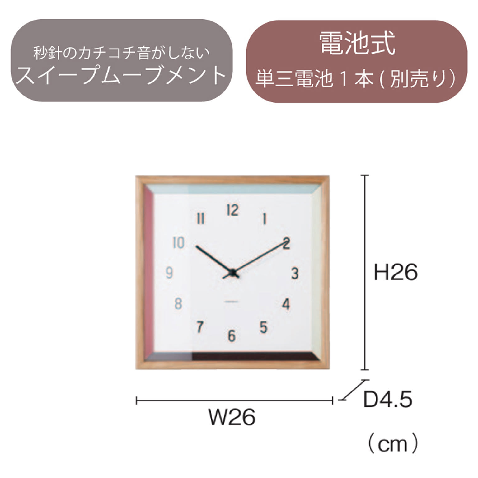 四辺それぞれ異なる色を配置したアートのような掛け時計。