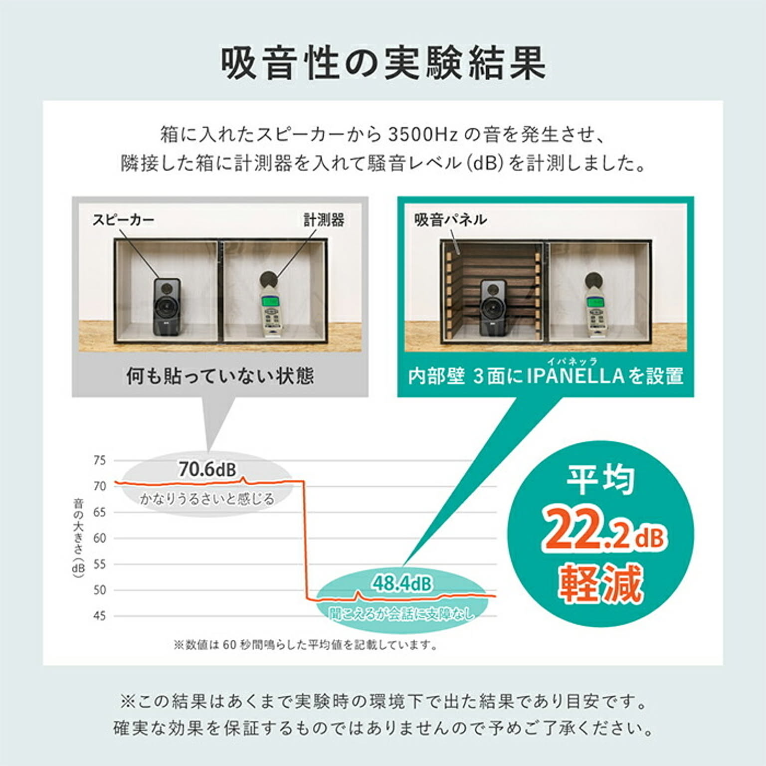 ・両面テープのみで貼る場合は吸音材の不織布と貼る壁面にも合わせた強力で厚みのあるテープをご用意いただき、しっかり圧着してください。
