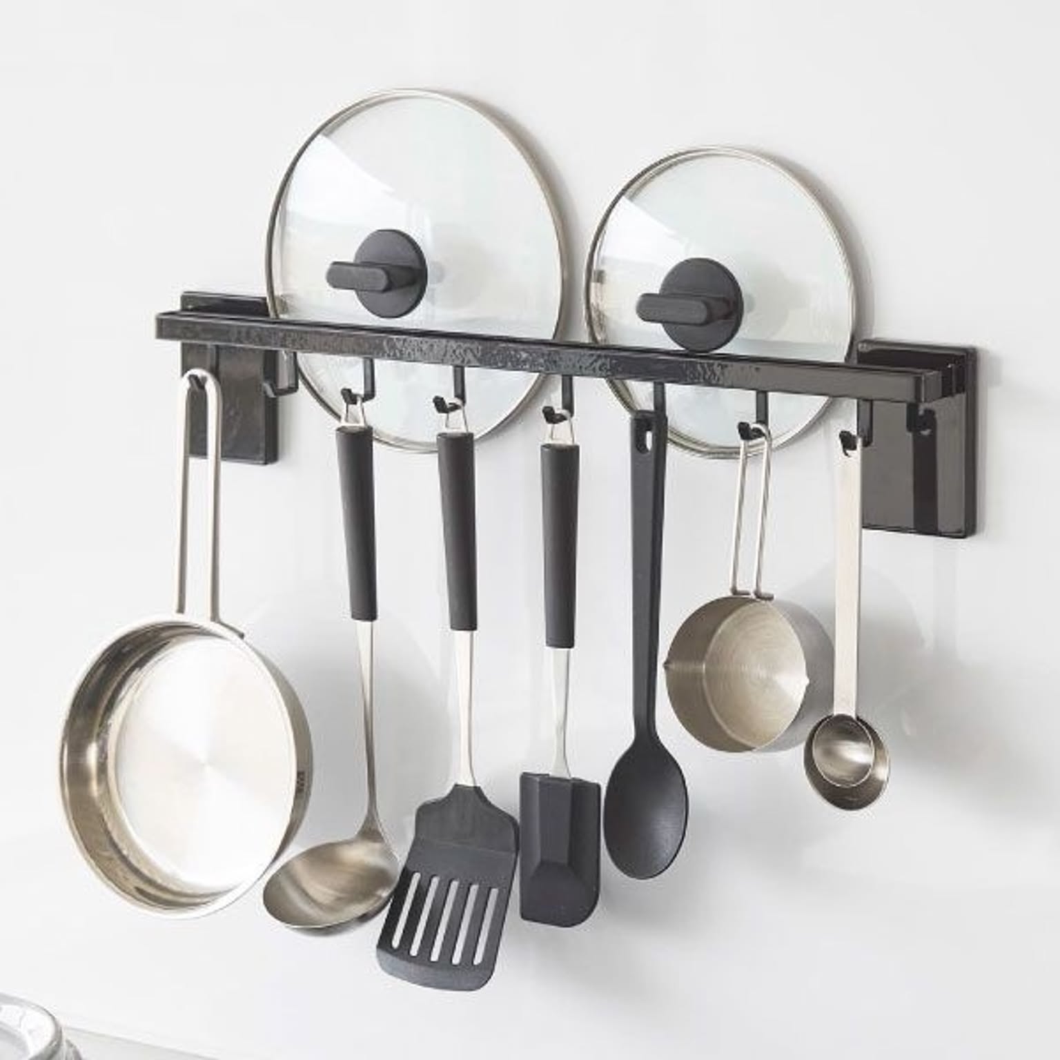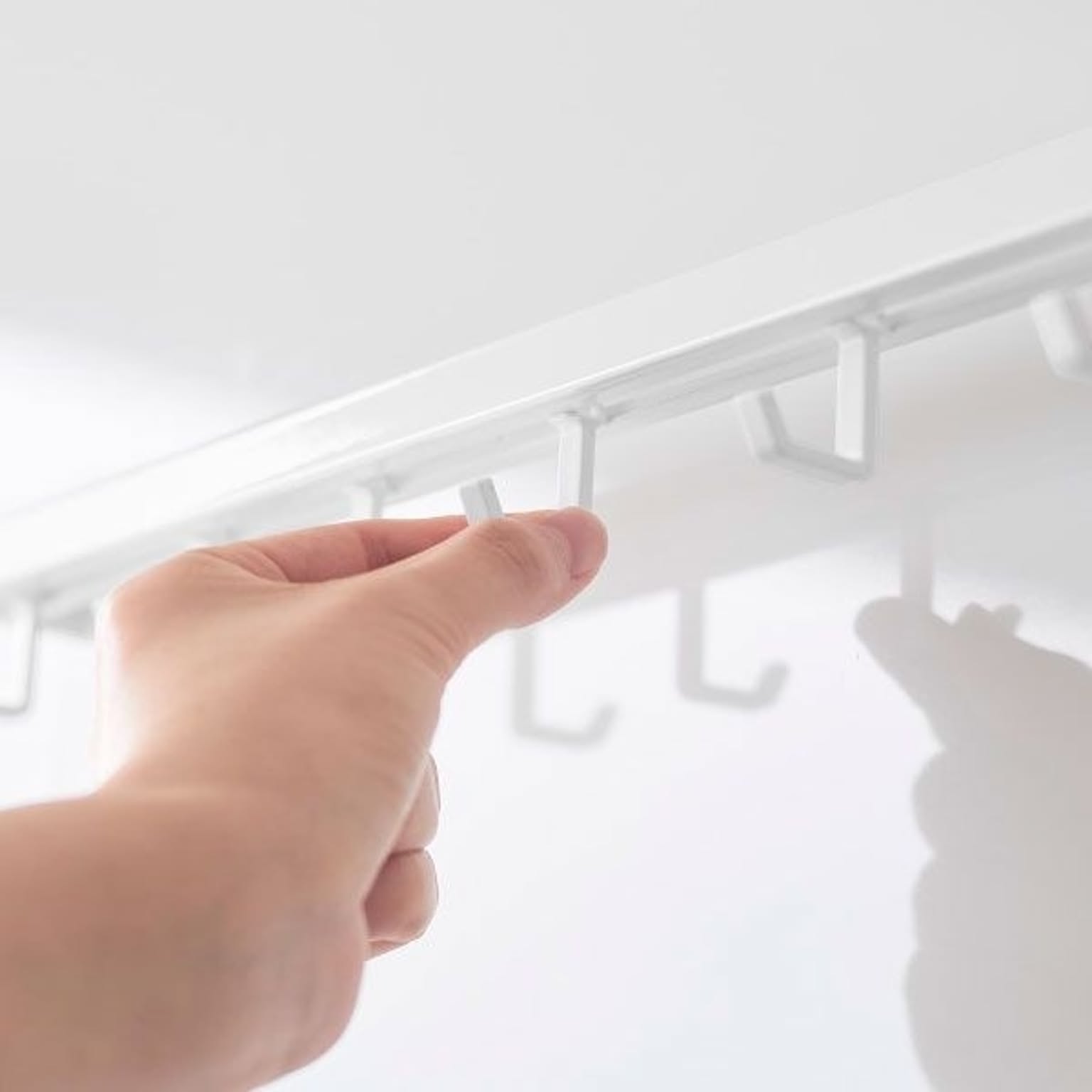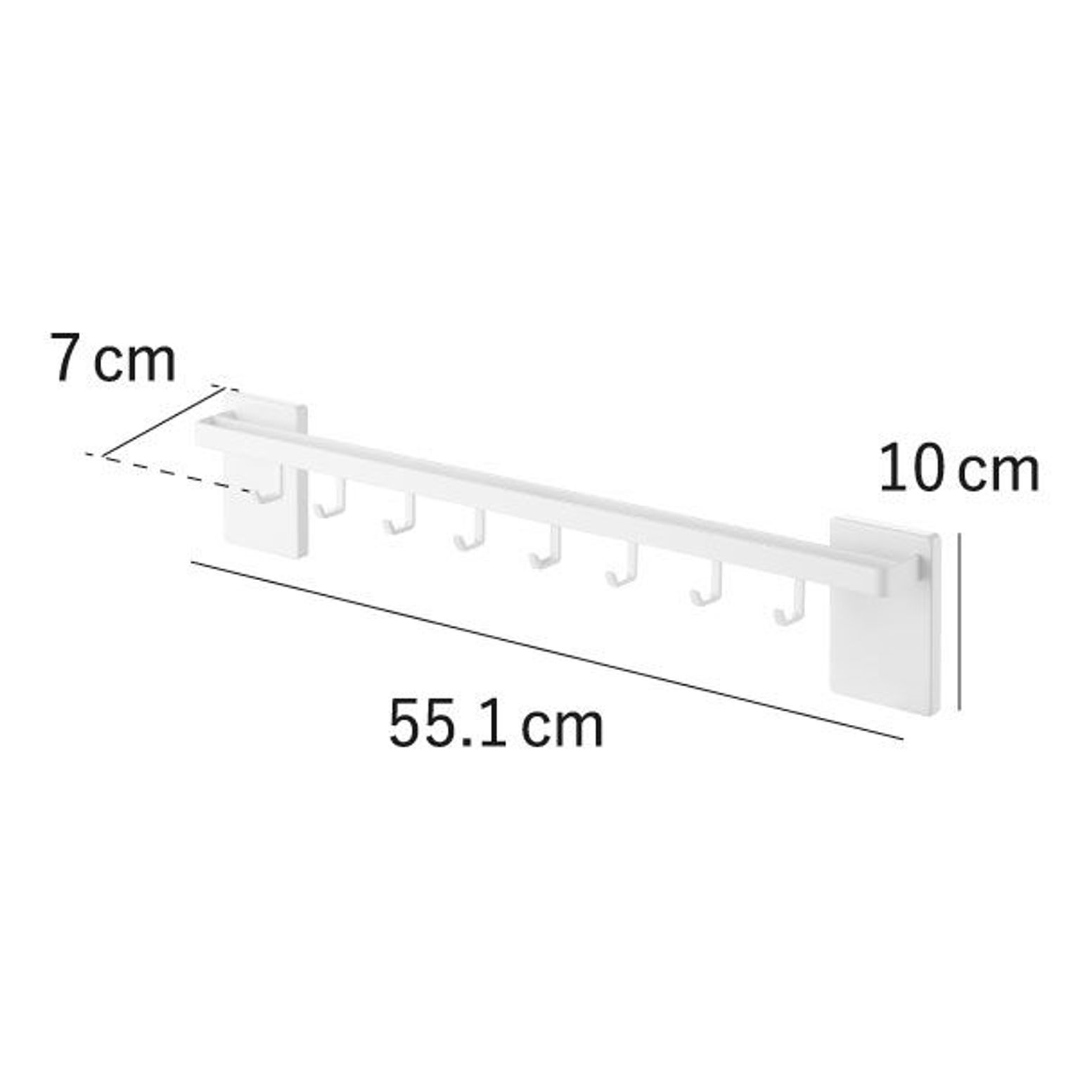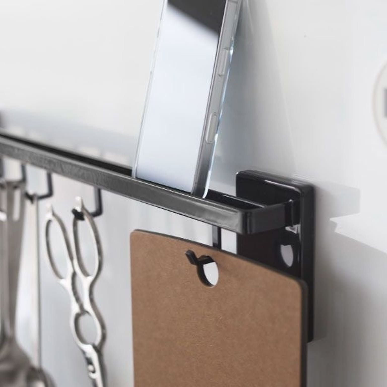 よく使うキッチンツールを吊り下げて収納できる、便利でおしゃれな鍋ふた収納です。 シンプルおしゃれな鍋ふたスタンドだから、様々なキッチンに馴染んでくれます。 光沢のある壁面にぴたっと貼って使える、フィルムフックタイプの鍋ふたスタンド。 8連タイプの鍋ふた収納フックなので、お玉やフライ返し、調理スプーンやゴムベラなど、 よく使う調理器具を一か所にまとめて収納できて便利です。 キッチンツールフックは1つ1つ動かせる可動式で、収納したい物のサイズに合わせて、 気軽にフックの位置を変更することができます。 鍋ふたスタンドと設置面とのスペースを活かして、置き場に困る鍋蓋をすっきり収納。 鍋ふた収納にはミゾがあり、スマホスタンドとしても使うことが可能。 料理中にスマホでレシピを見たり、料理動画を見たりする際に便利な鍋ふた収納です。 鍋ふたスタンドはとてもスリムな奥行きなので、圧迫感を与えずコンパクトに収納できます。 鍋ふたスタンド本体は、丈夫なスチール製で長くお使いいただけます。 表面にはユニクロメッキ+粉体塗装が施されていて、水や汚れに強いのも特徴です。 鍋ふたスタンドの色は、ホワイトとブラックの2色からお選びいただけます。 towerシリーズのおしゃれな鍋ふた収納を使って、より快適なキッチンに。