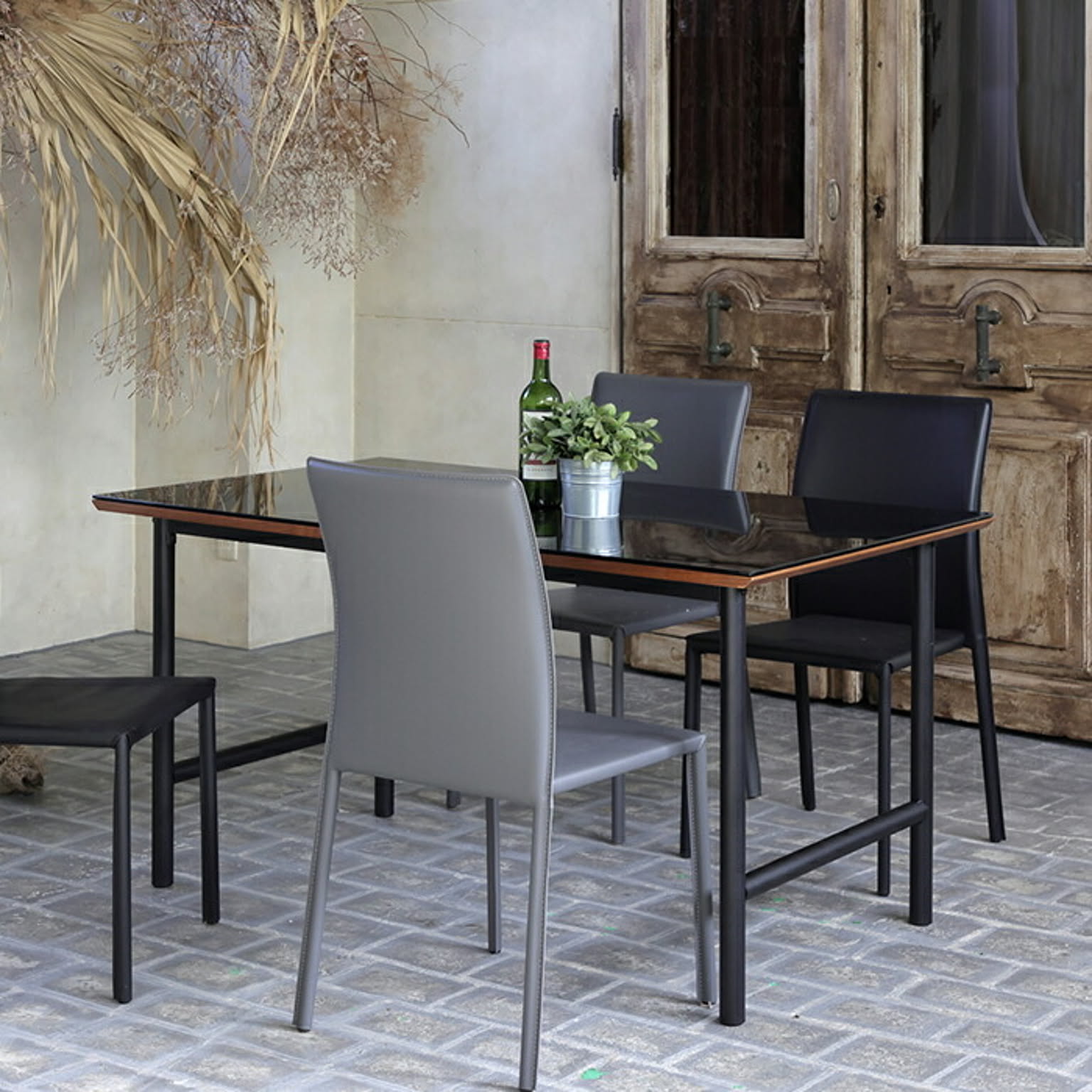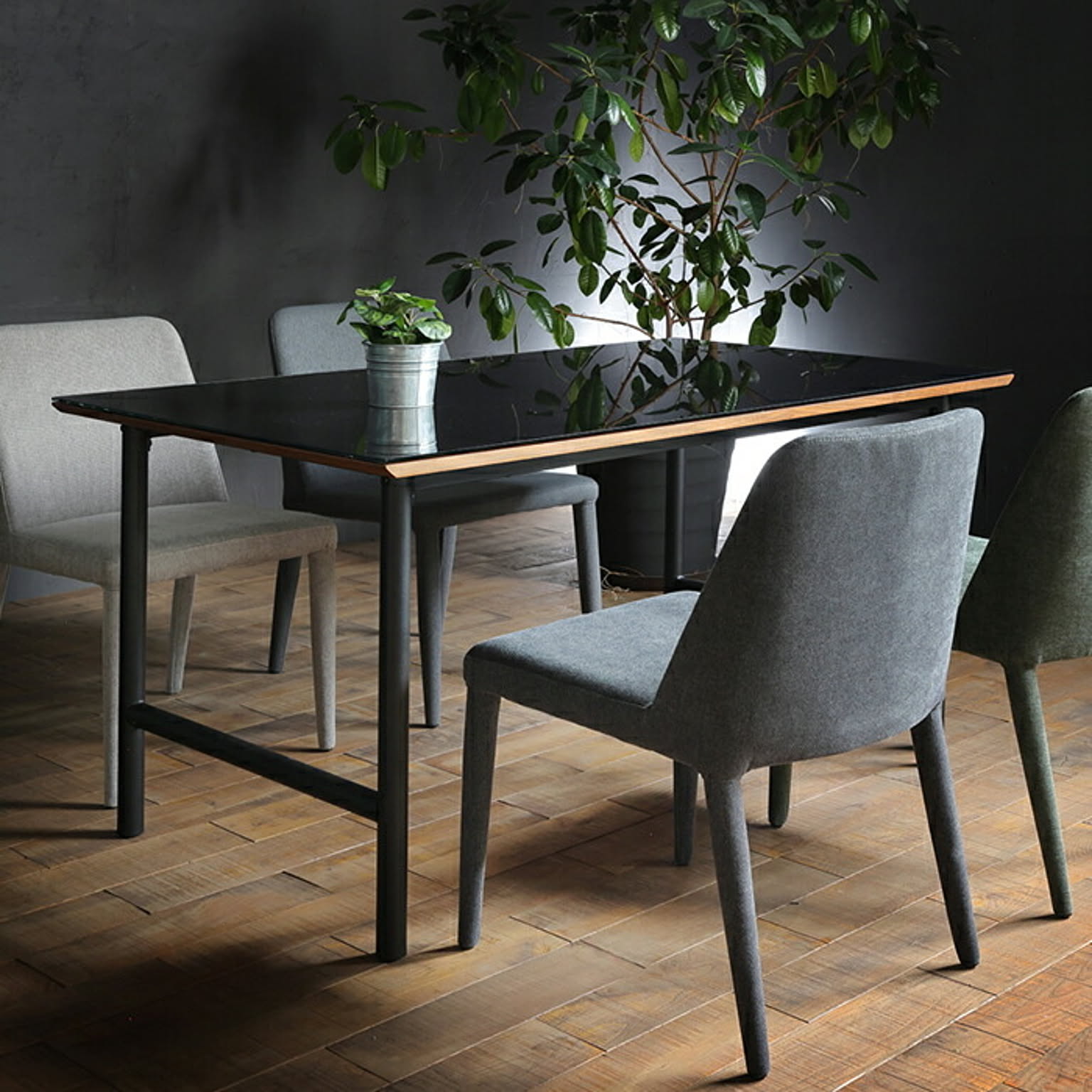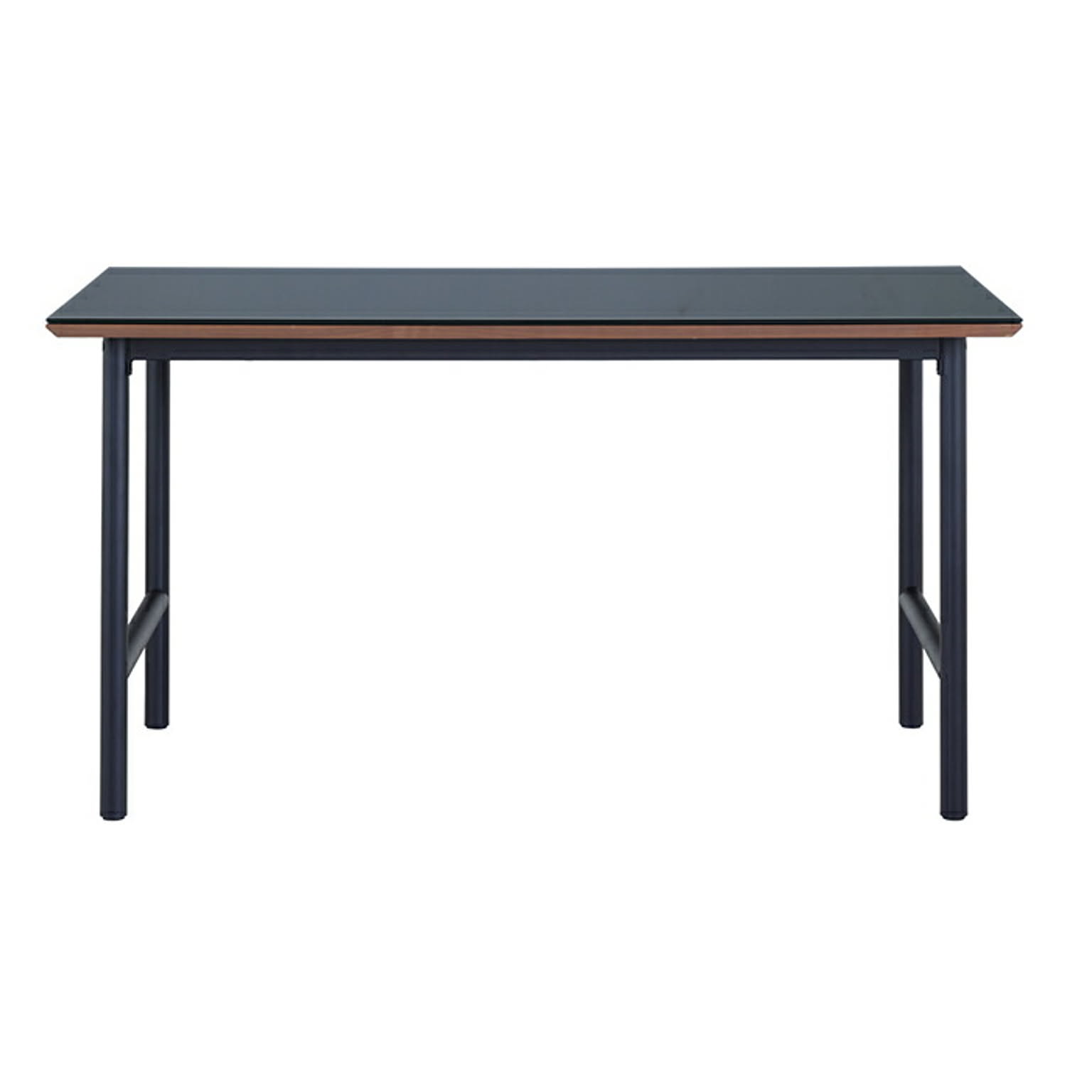 ウォルナット化粧板と清潔感あふれる強化ガラス天板を組み合わせたジールテーブル。ガラス裏には飛散防止フィルム貼り加工を施しております。