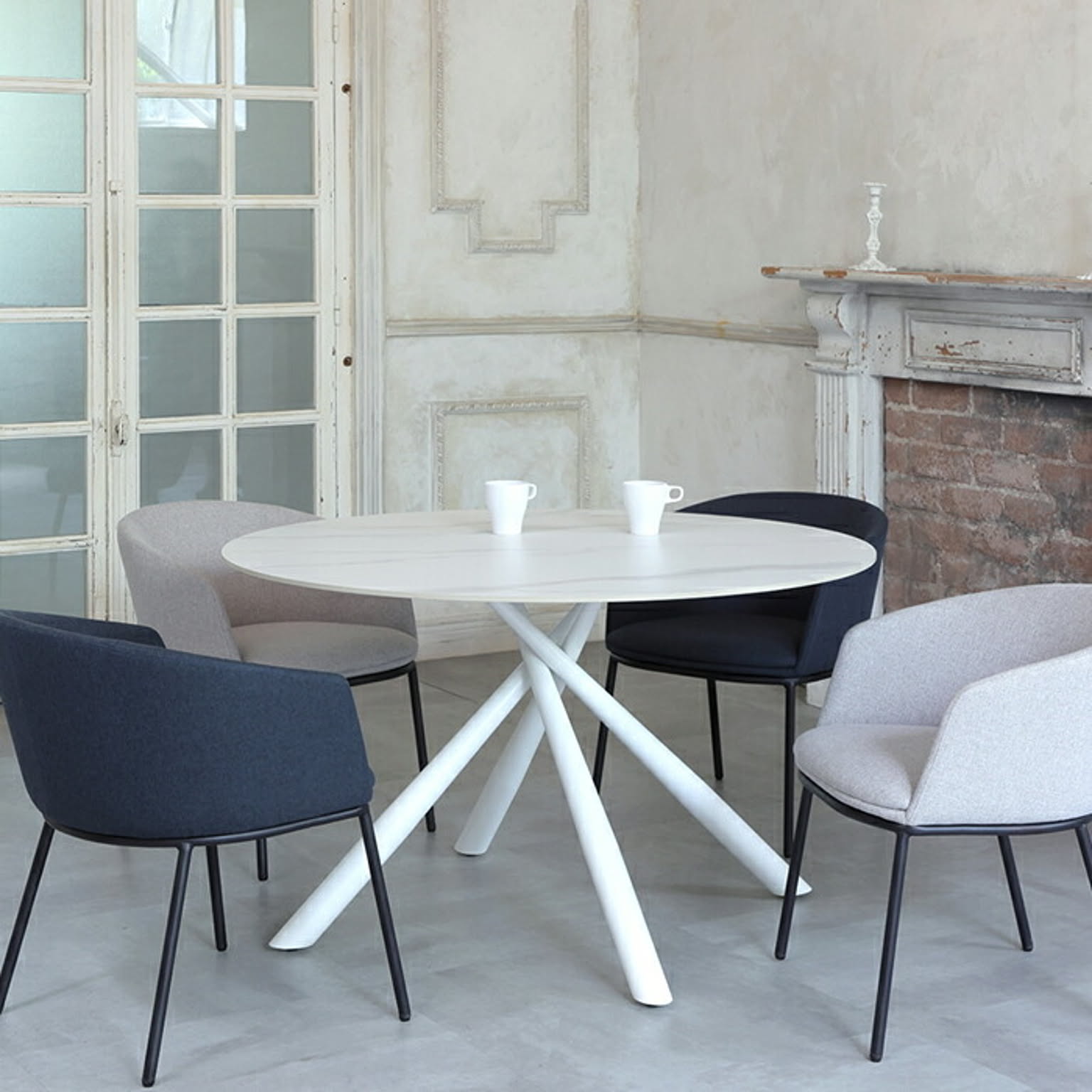 「熱」「傷」「汚れ」に強いセラミックを天板に採用。コブル セラミックラウンドテーブル。