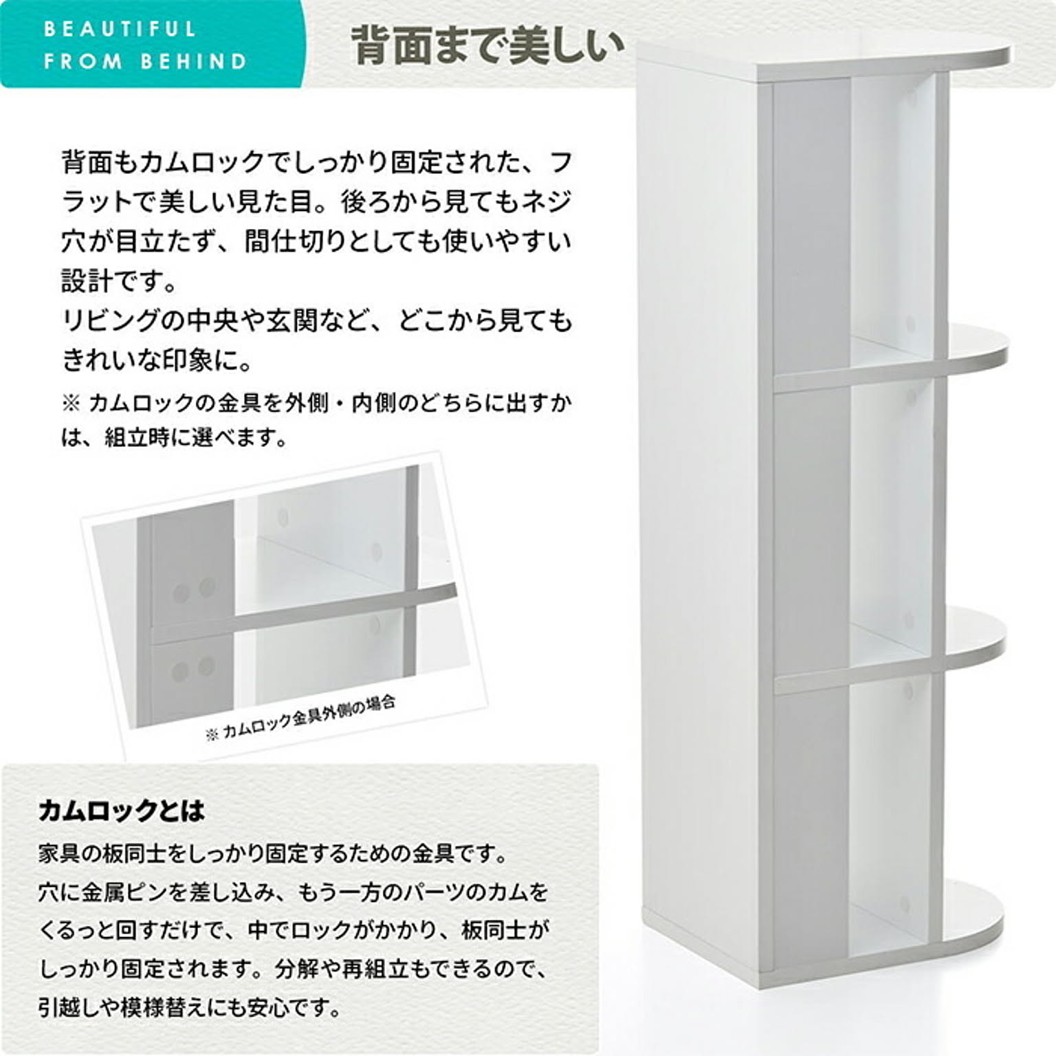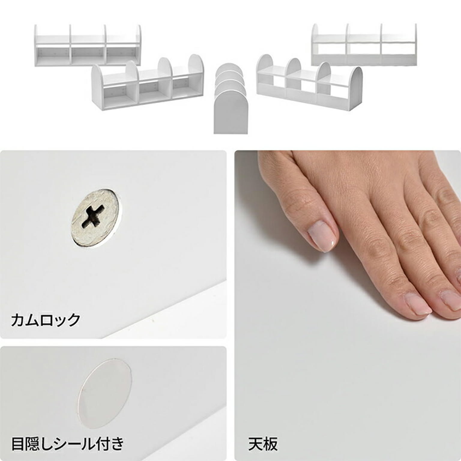 真っ白の天板で、しっかりとした造りとコンパクトなデザインのオープンラック。片側がフラットな形状なので、お部屋の角や壁に寄せても使用できます。2台あれば、ピッタリ合わせてシェルフや、ちょっとした間仕切りにもなります。収納スペースの高さは33cmでA4ファイルも収まる高さがあるので、雑誌なども収納できます。